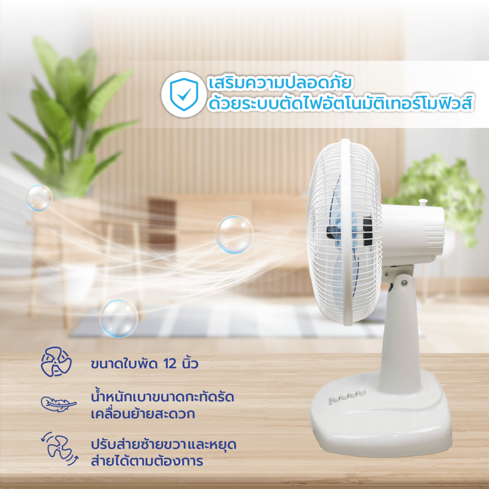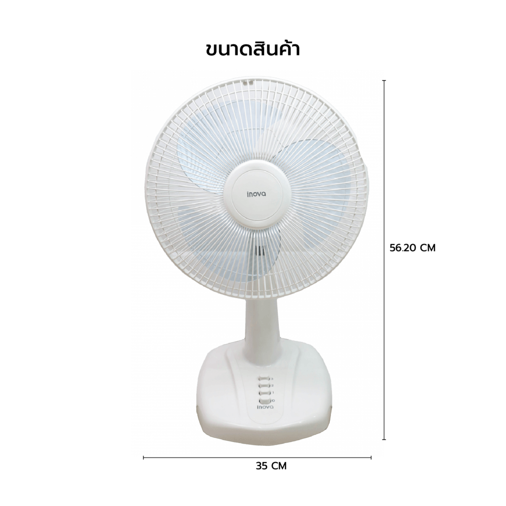 INOVA พัดลมตั้งโต๊ะ รุ่น HG-A1202 สีขาว เป็นพัดลมที่ตอบโจทย์การใช้งานในชีวิตประจำวัน ด้วยดีไซน์ที่สวยงาม ประสิทธิภาพในการทำความเย็น
