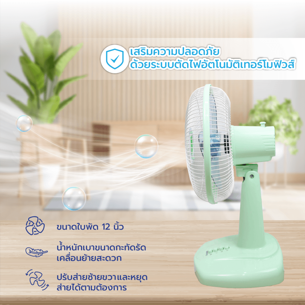 INOVA พัดลมตั้งโต๊ะ 12 นิ้ว รุ่นHG-A1202 สีเขียว เป็นพัดลมที่ตอบโจทย์การใช้งานในชีวิตประจำวัน ด้วยดีไซน์ที่สวยงาม ประสิทธิภาพในการทำความเย็น
