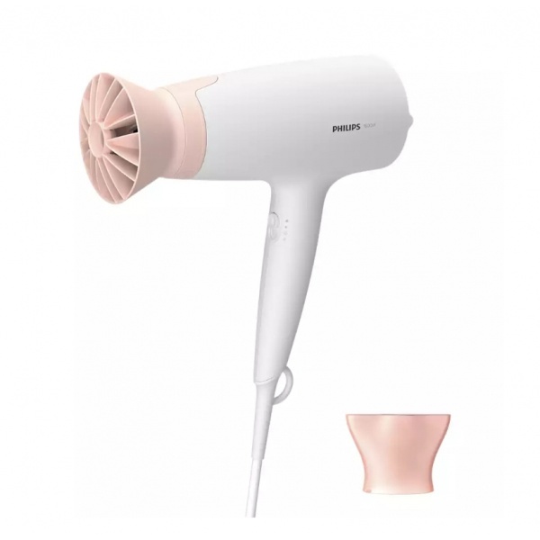 อุปกรณ์เสริม ThermoProtect ที่ได้รับการออกแบบอย่างเป็นเอกลักษณ์จะผสมผสานลมเป่าอุ่นและเย็นอันทรงพลังเพื่อการดูแลในทุกๆ วัน สามารถลดอุณหภูมิลงได้ถึง 10°C ขณะที่คุณกำลังเป่าผมได้อย่างรวดเร็ว