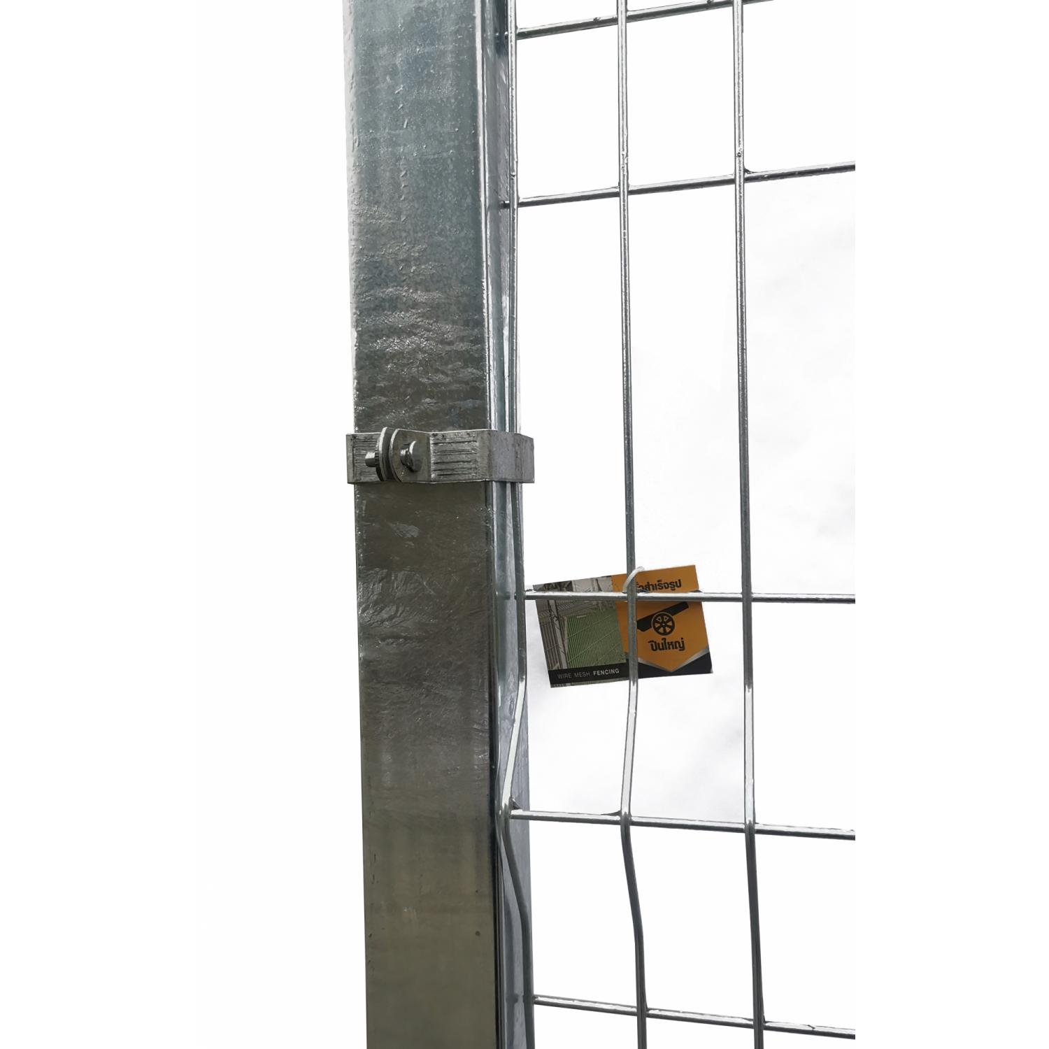 ยึดแผงรั้ว: ใช้ อุปกรณ์เสารั้วสำเร็จรูป – คลิปล็อค (ตามขนาดเสาที่ถูกต้อง) วางทับแผงรั้วบริเวณรูยึด