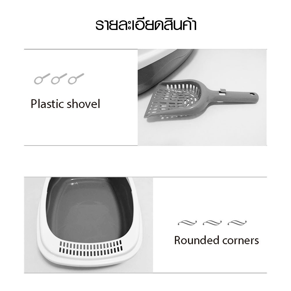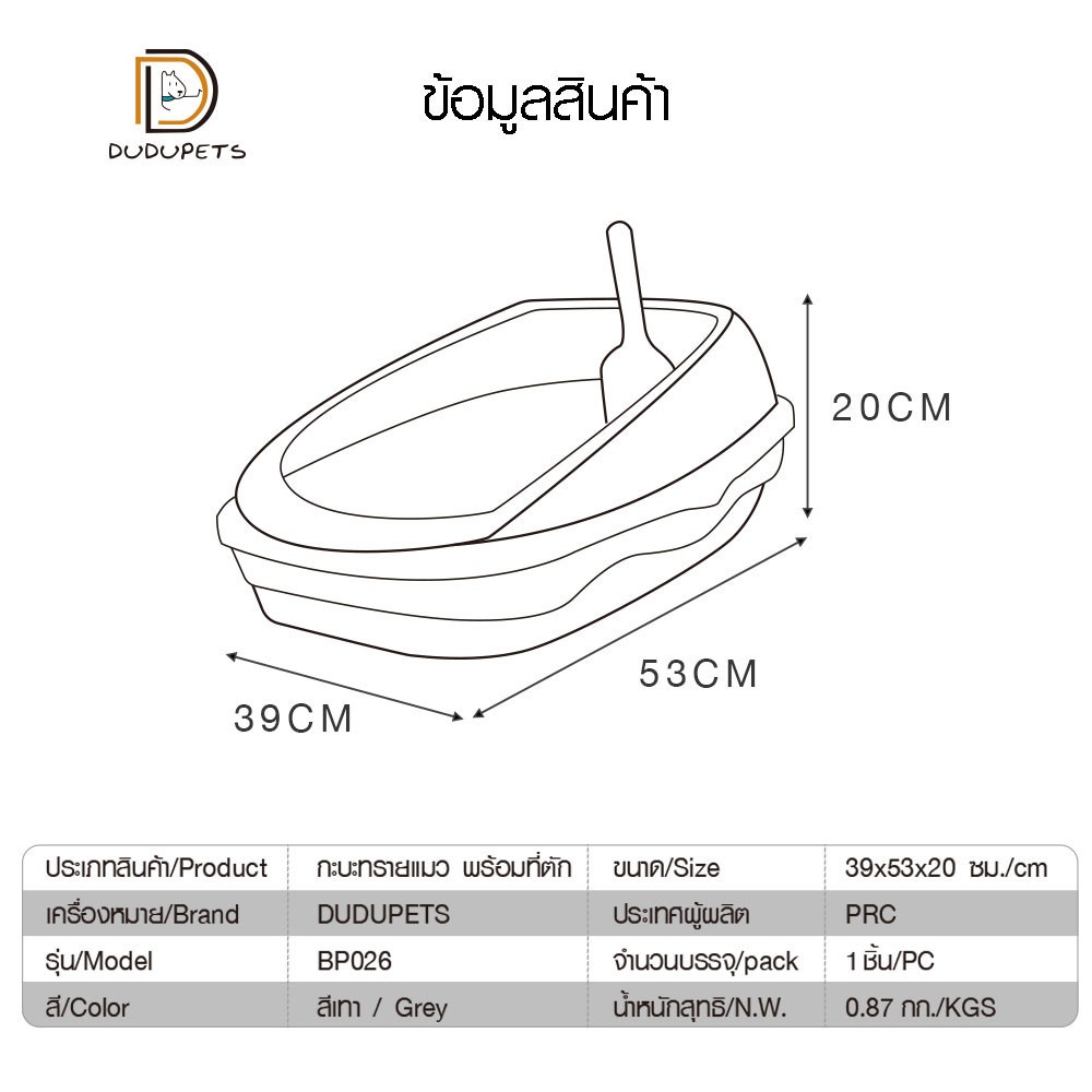 1 กะบะทรายแมว พร้อมที่ตัก รุ่น BP026ขนาด 39×53×20 ซม. สีเทา