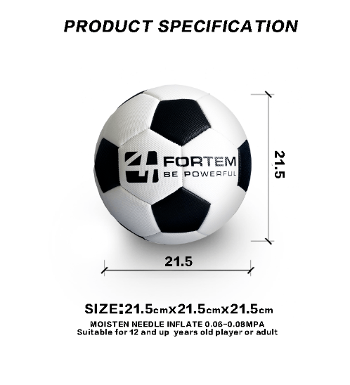 ลูกฟุตบอลหนังเย็บ PVC เบอร์ 5 รุ่น FT-111 ขนาด Φ21.5 ซม. สีขาว-ดำ