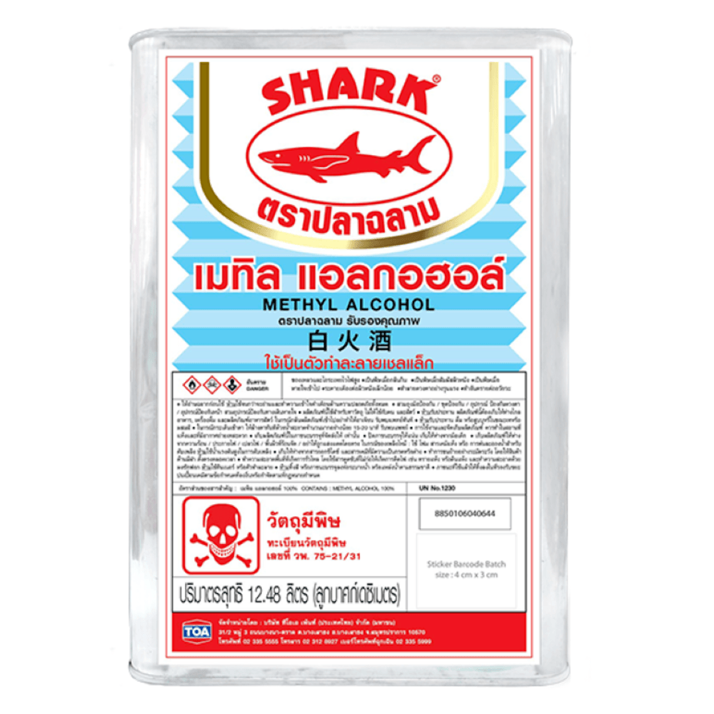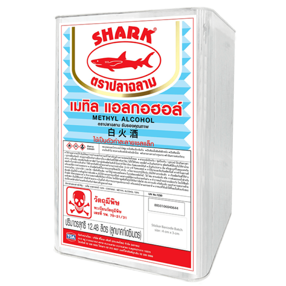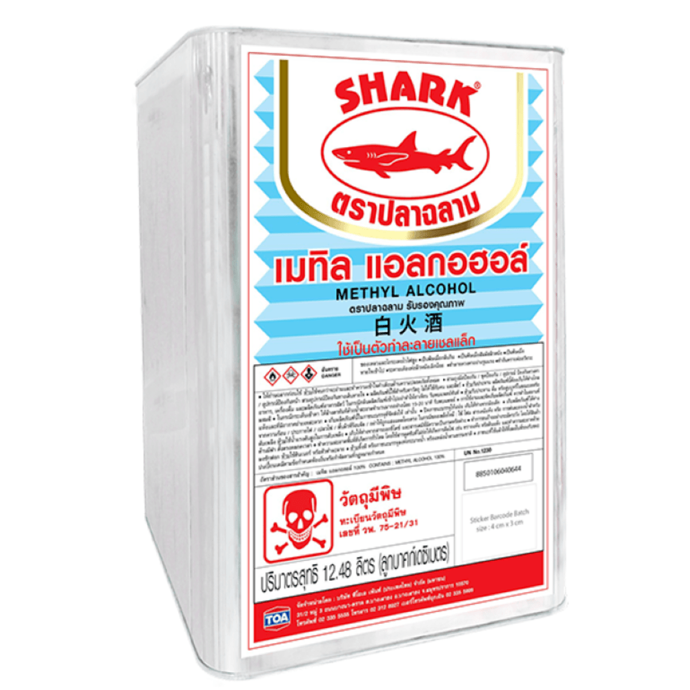 SHARK แอลกอฮอล์ ใช้เป็นตัวทำละลายสำหรับแชล็ค ใช้ล้างคราบไขมัน และใช้ในอุตสาหกรรมต่างๆ เช่น หมึกพิมพ์ สีย้อม ทินเนอร์ ฯลฯ