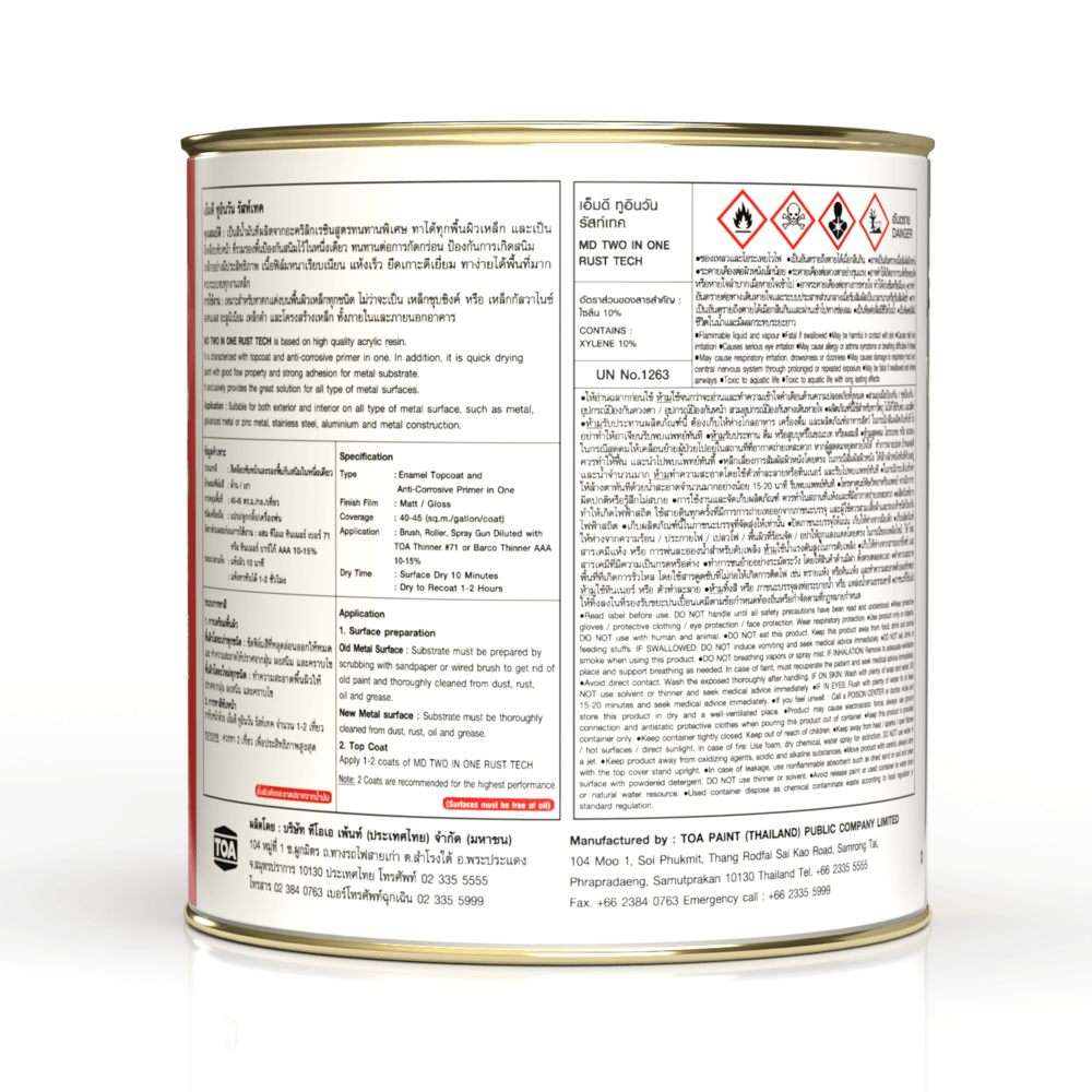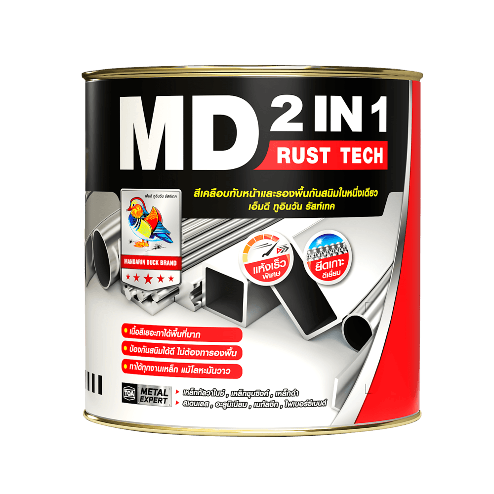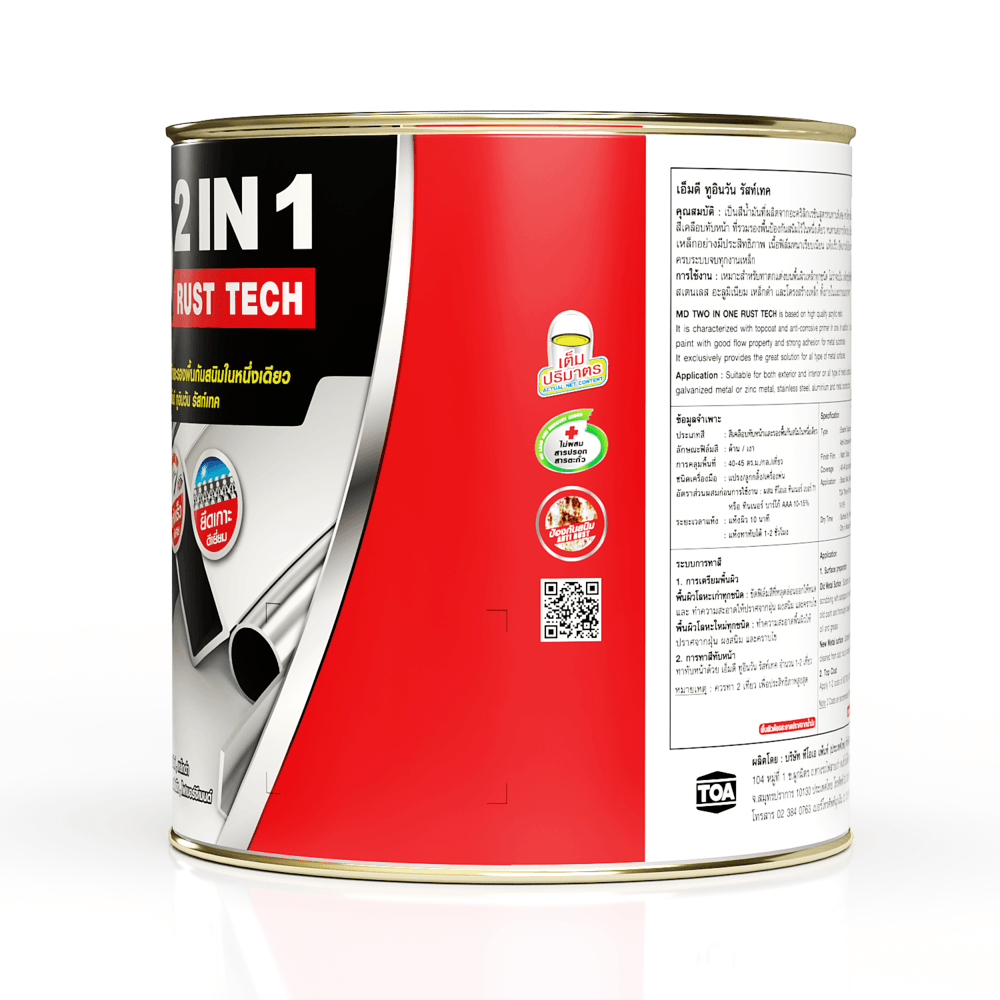 สีเคลือบและรองพื้นกันสนิม สำเร็จรูป (2in1) เป็นสีน้ำมันที่ผลิตจากอะครีลิคเรซินสูตรทนทานพิเศษ ทาได้ทุกพื้นผิว และเป็นสีเคลือบด้านทับหน้า ที่รวมรองพื้นกันสนิมไว้ในหนึ่งเดียว ทนทานต่อการกัดกร่อน ป้องกันการ เกิดสนิมอย่างมีประสิทธิภาพ เนื้อฟิล์มหนาเรียบเนียน แห้งเร็ว ยึดเกาะดีเยี่ยม ทาง่ายได้พื้นที่มาก