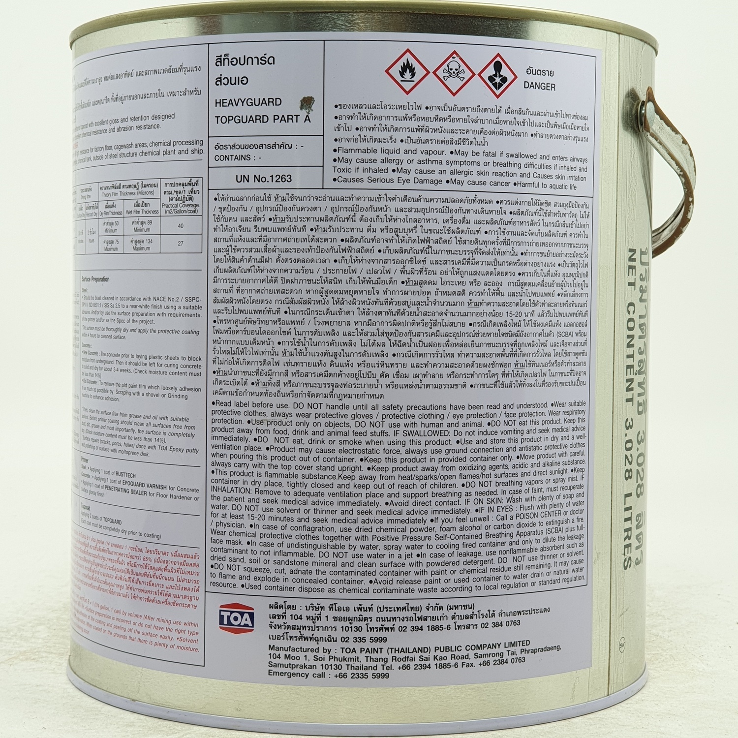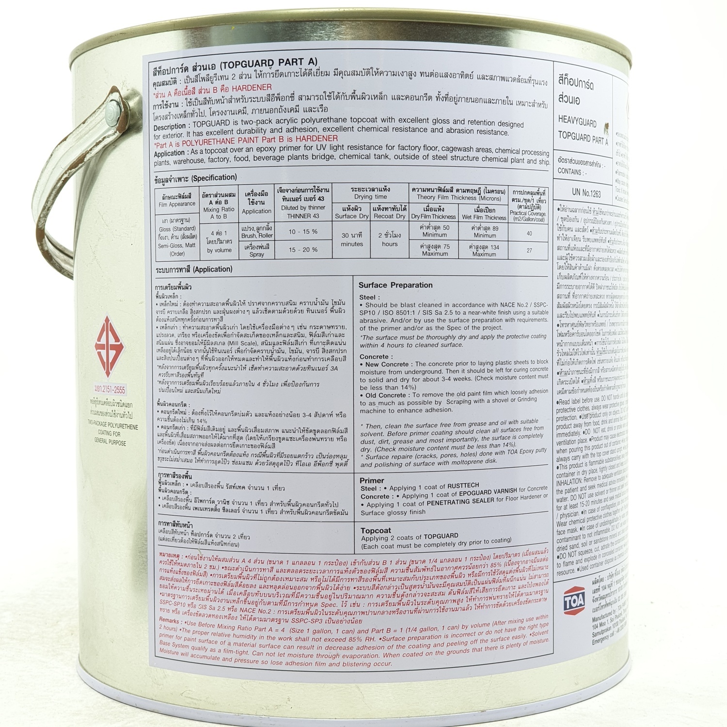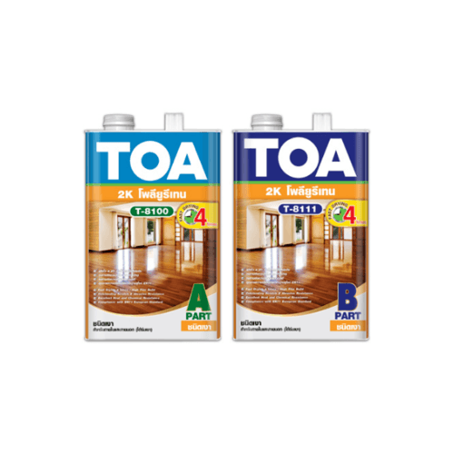 ทีโอเอ โพลียูรีเทน 2 ส่วน ชนิดเงา มีคุณสมบัติแห้งไว เนื้อสีมาก ทาแล้วขึ้นฟิล์มเร็ว ยึดเกาะกับไม้ได้ดี ทนทานต่อการขูดขีด การกระแทก การขัดถู และสารเคมีได้ดี ให้ฟิล์มสีที่มีความเงาสูง และ ป้องกันน้ำซึมได้ดีเยี่ยม