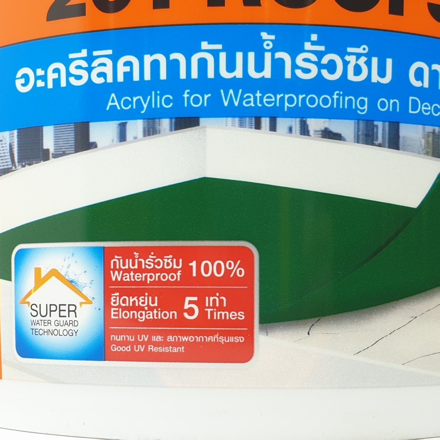 อะคริลิกทากันน้ำรั่วซึม 100% สำหรับดาดฟ้า หลังคา เป็นอะคริลิกชนิดยืดหยุ่นคุณภาพสูง ใช้สำหรับทาเคลือบพื้นผิวเพื่อป้องกันการรั่วซึมจากรอยแตกร้าวของคอนกรีตบริเวณต่างๆ เช่น ดาดฟ้า กระเบื้องมุงหลังคาทุกชนิด ระเบียง รางระบายน้ำคอนกรีต ฯลฯ