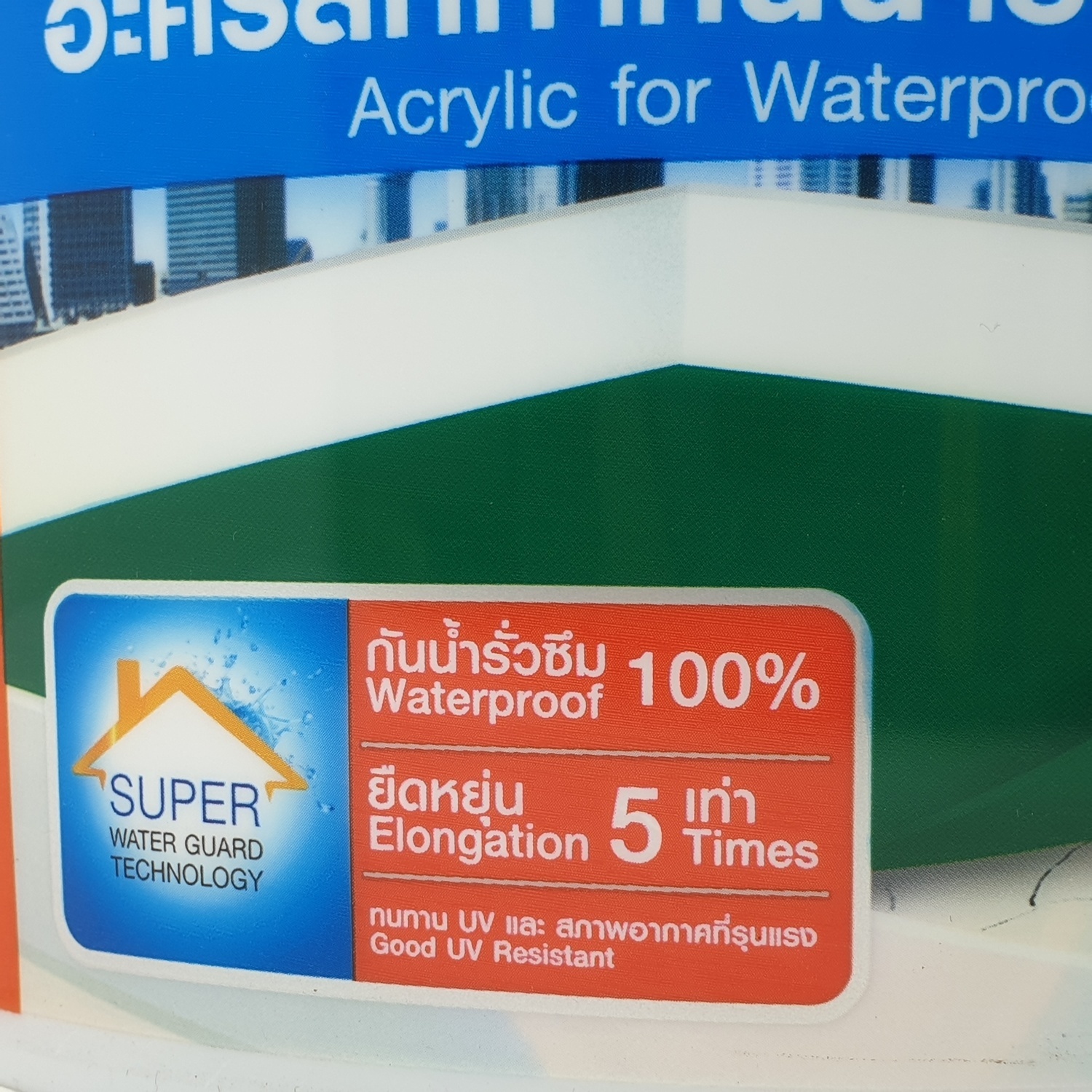 อะคริลิกทากันน้ำรั่วซึม 100% สำหรับดาดฟ้า หลังคา เป็นอะคริลิกชนิดยืดหยุ่นคุณภาพสูง ใช้สำหรับทาเคลือบพื้นผิวเพื่อป้องกันการรั่วซึมจากรอยแตกร้าวของคอนกรีตบริเวณต่างๆ เช่น ดาดฟ้า กระเบื้องมุงหลังคาทุกชนิด ระเบียง รางระบายน้ำคอนกรีต ฯลฯ