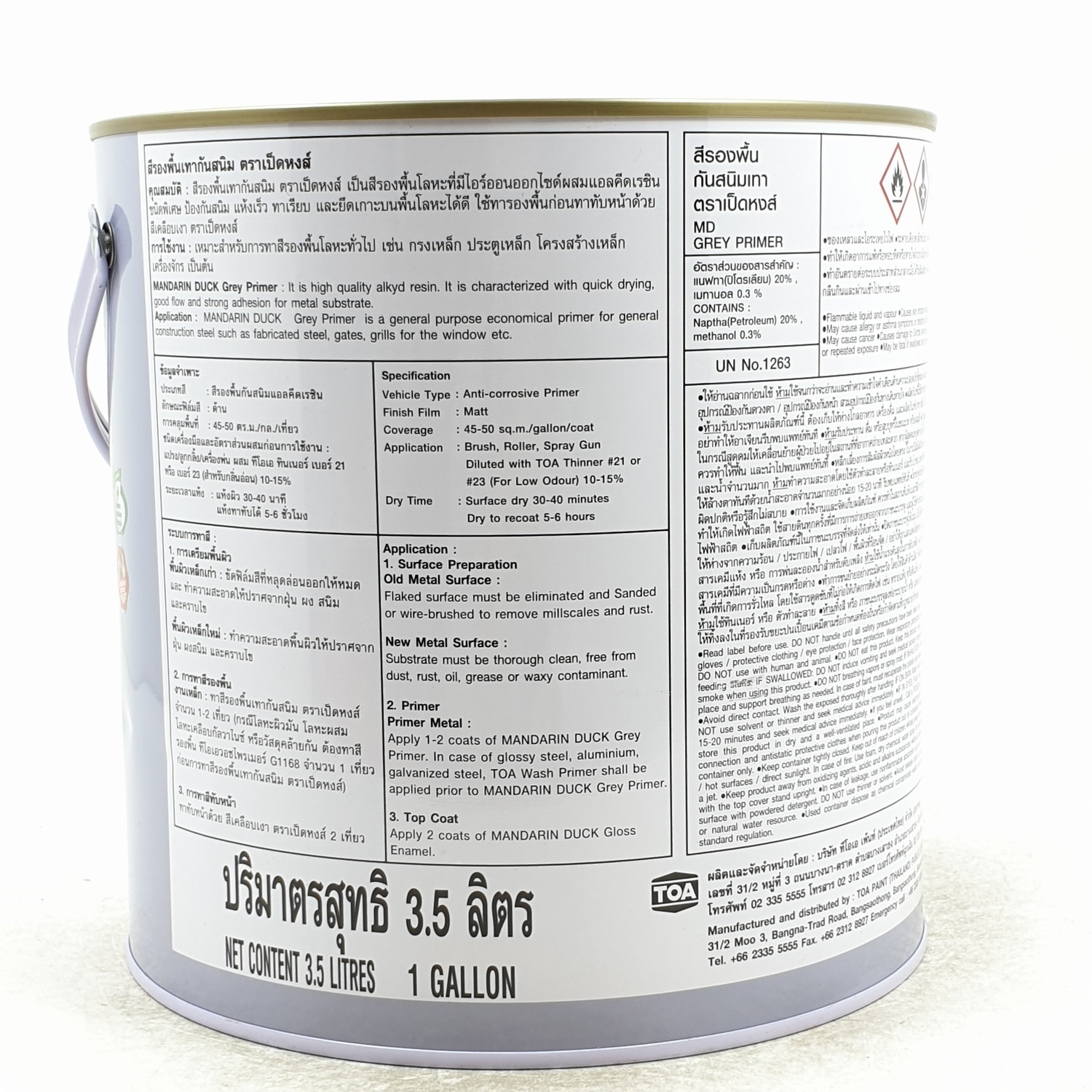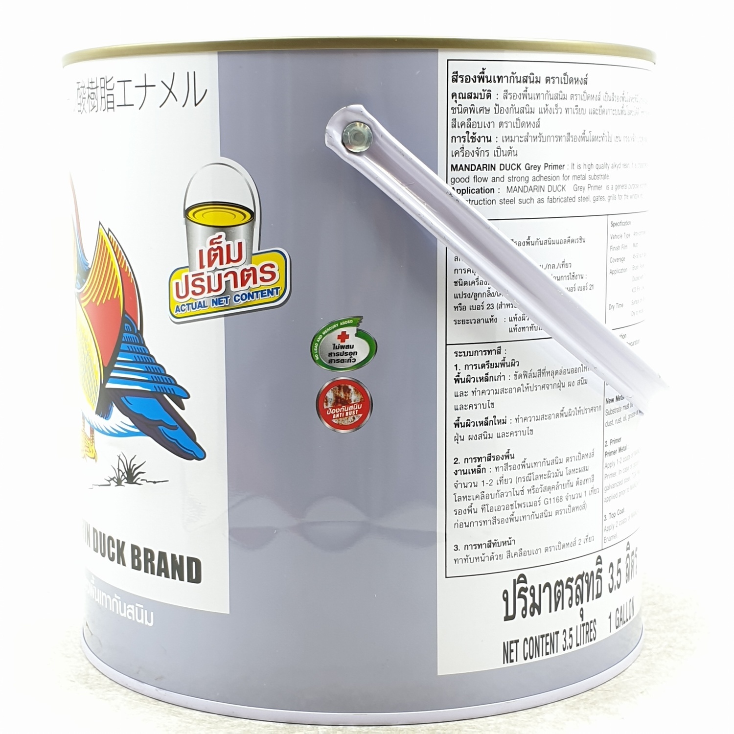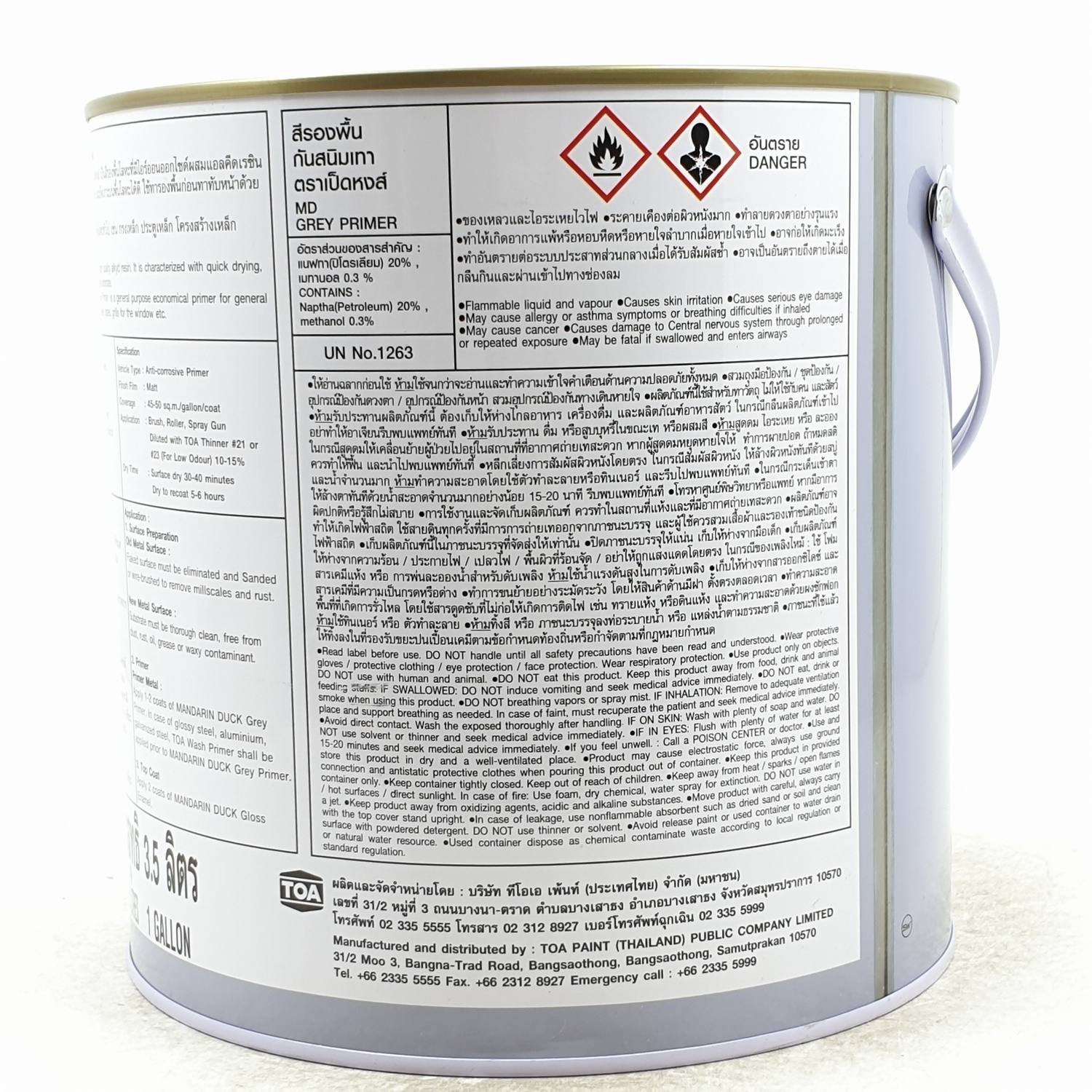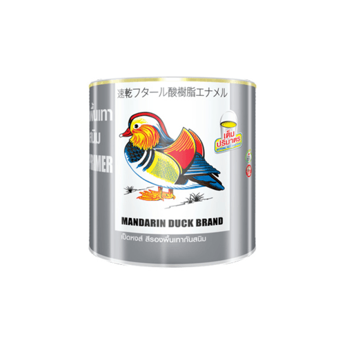 สีรองพื้นที่มีส่วนผสมของผงสี และอัลขีดเรซินคุณภาพสูง ป้องกันสนิม ทาเรียบ และยึดเกาะบนพื้นผิวโลหะได้ดี ใช้ทารองพื้นก่อนทาทับหน้าด้วยสีเคลือบเงาตราเป็ดหงส์