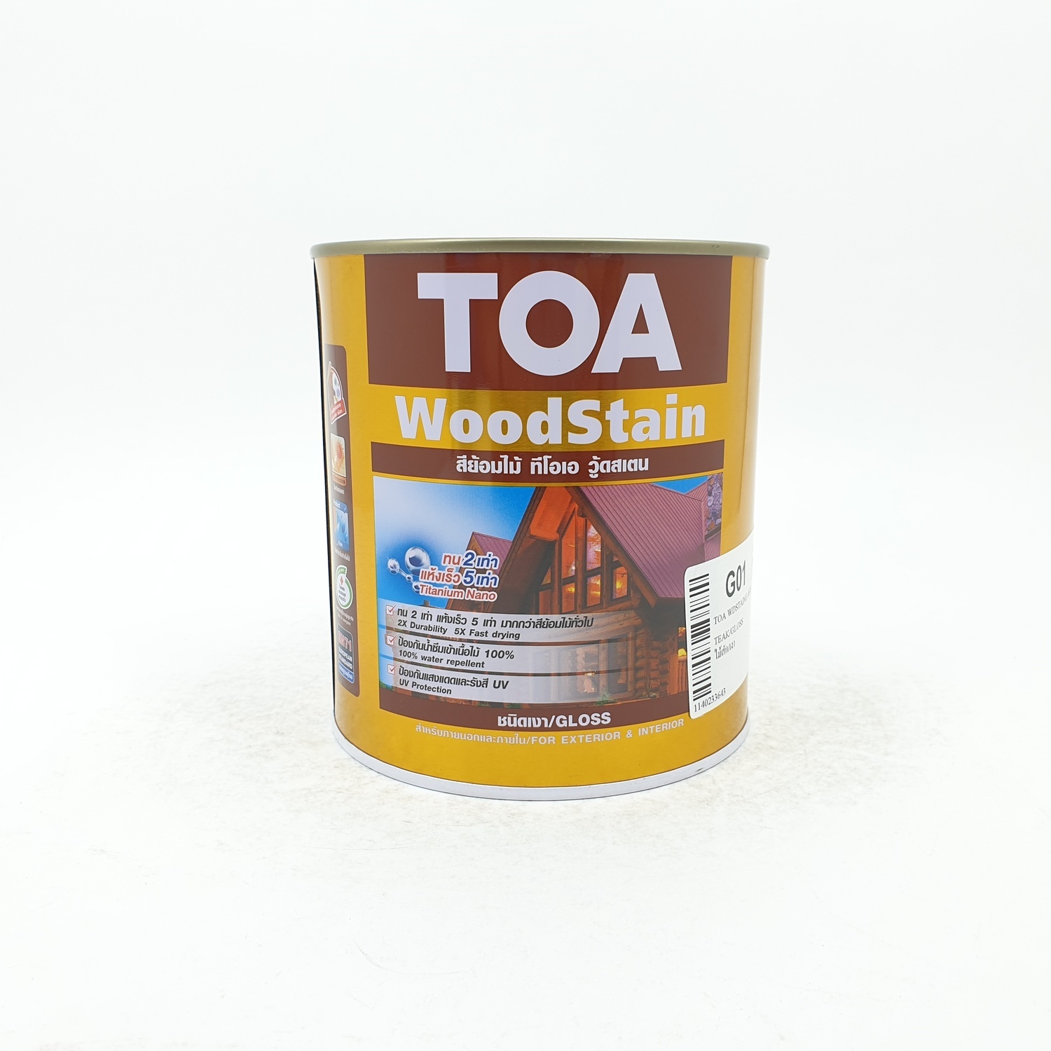 สีย้อมไม้ ทีโอเอ วู้ดสเตน ผลิตจากแอลคีด เรซิน มีส่วนผสมของสารเติมแต่งชนิดพิเศษ และแม่สีชนิดโปร่งแสง ช่วยป้องกันเนื้อไม้จากรังสียูวีได้ดีเยี่ยม ฟิล์มสีมีความยืดหยุ่นสูง ป้องกันน้ำซึมได้ดี มีส่วนผสมของสารป้องกันเชื้อราและแมลงกัดกินไม้ ทาง่าย ขึ้นฟิล์มไว ให้ฟิล์มสีที่มีความเงาสูง เนื้อสีซึมลึกเข้าสู่เนื้อไม้ ช่วยให้ยึดเกาะกับเนื้อไม้ได้ดีเยี่ยม