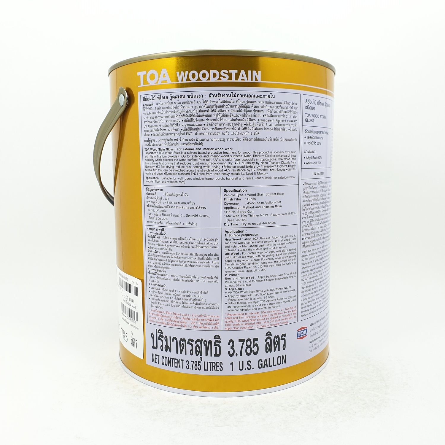 สีย้อมไม้ ทีโอเอ วู้ดสเตน ผลิตจากแอลคีด เรซิน มีส่วนผสมของสารเติมแต่งชนิดพิเศษ และแม่สีชนิดโปร่งแสง ช่วยป้องกันเนื้อไม้จากรังสียูวีได้ดีเยี่ยม ฟิล์มสีมีความยืดหยุ่นสูง ป้องกันน้ำซึมได้ดี มีส่วนผสมของสารป้องกันเชื้อราและแมลงกัดกินไม้ ทาง่าย ขึ้นฟิล์มไว ให้ฟิล์มสีที่มีความเงาสูง เนื้อสีซึมลึกเข้าสู่เนื้อไม้ ช่วยให้ยึดเกาะกับเนื้อไม้ได้ดีเยี่ยม