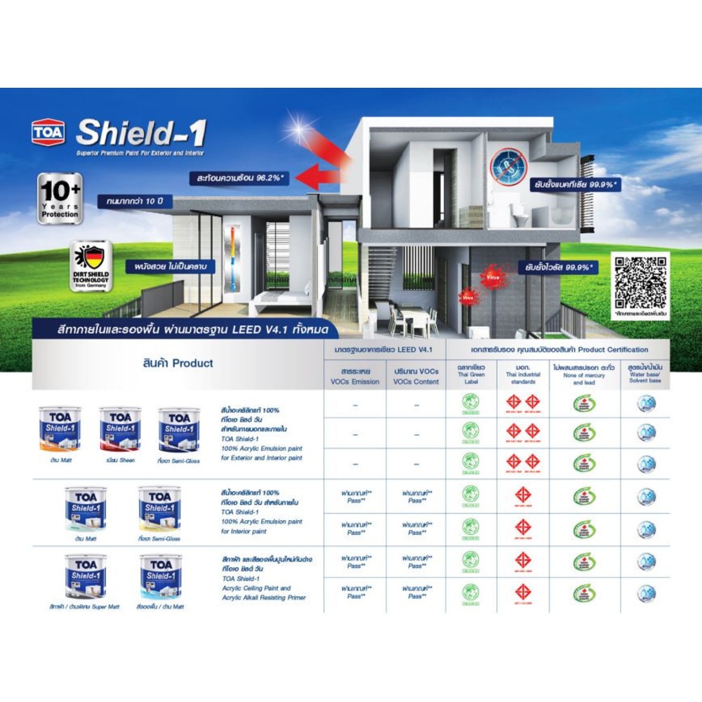สีน้ำเกรดพรีเมียมคุณภาพสูง ทนทานมากกว่า 10 ปี ผนังสวย ไม่เป็นคราบด้วย Dirt Shield Technology เทคโนโลยีล่าสุดจากประเทศเยอรมัน ปกป้องทุกคราบได้เหนือกว่า ทนทานต่อเชื้อราและตะไคร่น้ำ ได้ดีกว่าเดิมถึง 2 เท่า และสะท้อนความร้อนได้ยอดเยี่ยม สูงถึง 96.2%*