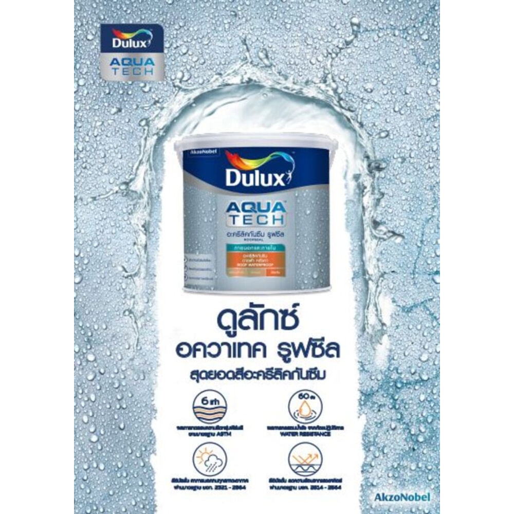 ดูลักซ์ อควาเทค สีรูฟซีลอะครีลิคกันซึม ดาดฟ้าและหลังคา ให้ความทนทานสูง ทาง่าย ฟิล์มสีหนาและยืดหยุ่นสูง 6-8 เท่า เมื่อเทียบกับสีอะครีลิคทั่วไป เหมาะสำหรับทาดาดฟ้า หลังคา ทำจากผงสีละเอียดและกาวโพลีเมอร์ที่มีความทนทานสูงสุด นวัตกรรมล้ำสมัยด้วยเทคโนโลยี Hydroresist ประกอบเป็นชั้นที่ป้องกันน้ำซึมผ่านได้ยาก ฟิล์มสียืดหยุ่นสูงปกป้องพื้นผิวที่เป็นรูพรุนช่วยผสานรอยแตกร้าว ป้องกันน้ำซึมและเชื้อรา ตะไคร่น้ำ