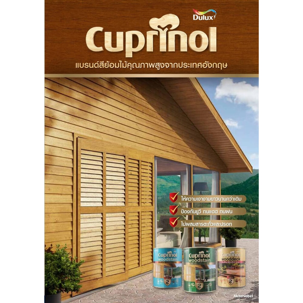 สีย้อมไม้กึ่งโปร่งแสง ผลิตจากเรซิ่นคุณภาพสูง ทำให้ช่วยรักษาและยืดอายุให้แก่เนื้อไม้ได้ยาวนานเป็นพิเศษ ทนทานต่อสภาวะอากาศ โดยเฉพาะในเขตร้อนชื้น เหมาะสำหรับใช้ทาย้อมไม้ที่เป็นส่วนประกอบของตัวบ้าน