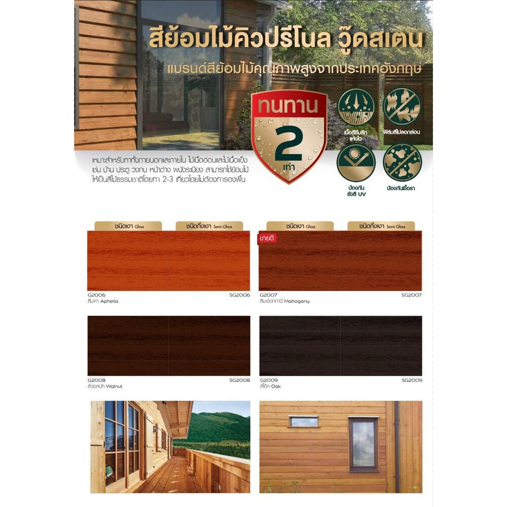 สีย้อมไม้กึ่งโปร่งแสง ผลิตจากเรซิ่นคุณภาพสูง ทำให้ช่วยรักษาและยืดอายุให้แก่เนื้อไม้ได้ยาวนานเป็นพิเศษ ทนทานต่อสภาวะอากาศ โดยเฉพาะในเขตร้อนชื้น เหมาะสำหรับใช้ทาย้อมไม้ที่เป็นส่วนประกอบของตัวบ้าน