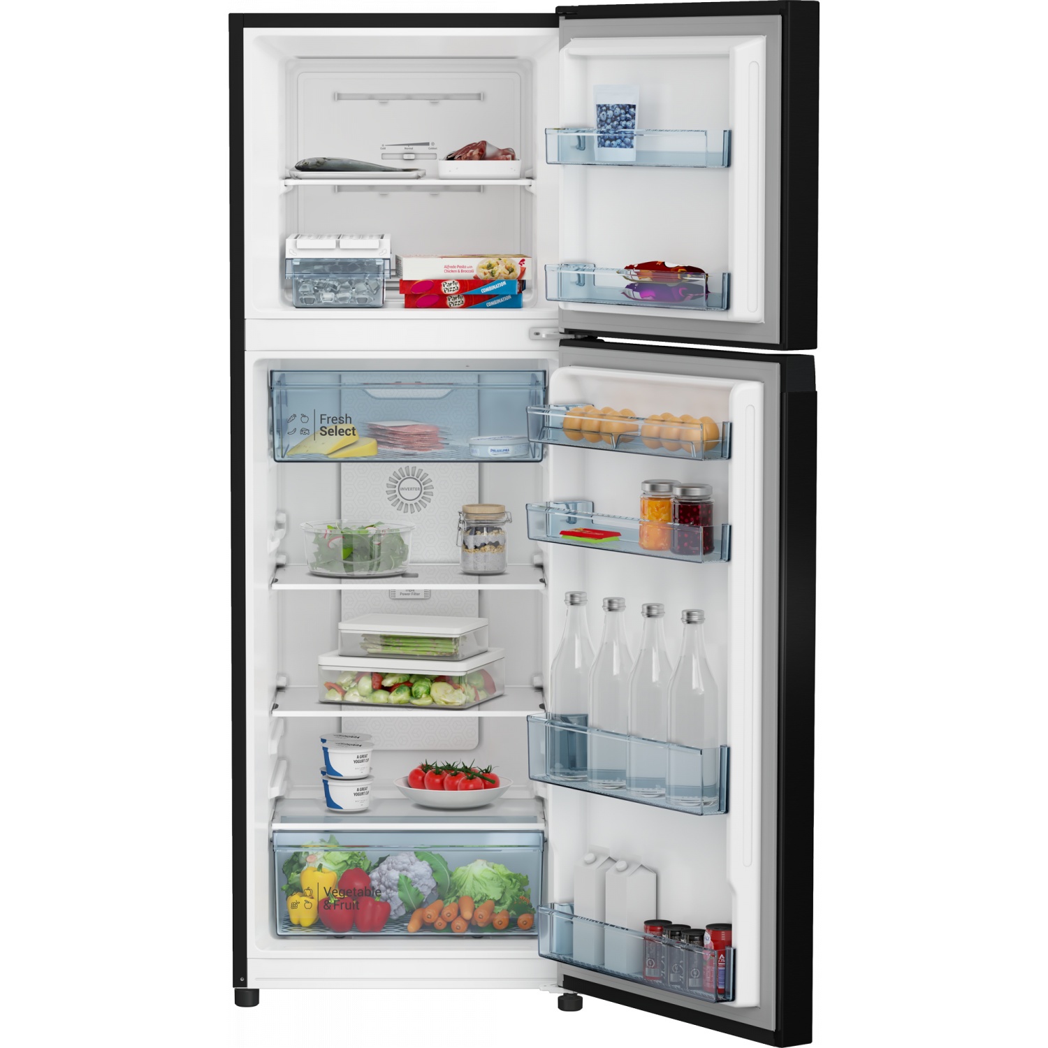 ตู้เย็น Top Freezer 2 ประตู มาพร้อมระบบ Flexible Fresh Select แผ่นกรองขจัดกลิ่น ที่เลือกเก็บความสดได้ดั่งใจ ปรับเปลี่ยนลิ้นชักจัดเก็บให้เหมาะสมกับของที่จะแช่มากที่สุด โดยเลือกตำแหน่ง และโหมดของลิ้นชักได้ตามความต้องการ เลือกวางได้ทั้งส่วนบนหรือส่วนล่างของตู้เย็น อุณหภูมิภายในลิ้นชักสามารถปรับเปลี่ยนได้ง่ายโดยการสลับระหว่างโหมดสำหรับแช่ผักและโหมดผลิตภัณฑ์จากนม/เนื้อสัตว์ เมื่อวางไว้ในตำแหน่งเดิม และระบบ Triple Power Filter แผ่นกรอง Triple Power Filter ช่วยขจัดองค์ประกอบกลิ่น*1 และแบคทีเรียทั่วทั้งตู้เย็นได้ถึง 99%*2 ความจุทั้งหมด 240 ลิตร คอมเพรสเซอร์อินเวอร์เตอร์ประสิทธิภาพสูง Surround Air Cooling ระบบกระจายลมเย็นโอบล้อมรอบทิศทาง พร้อมสัญญาณเตือนเมื่อไม่ได้ปิดประตู