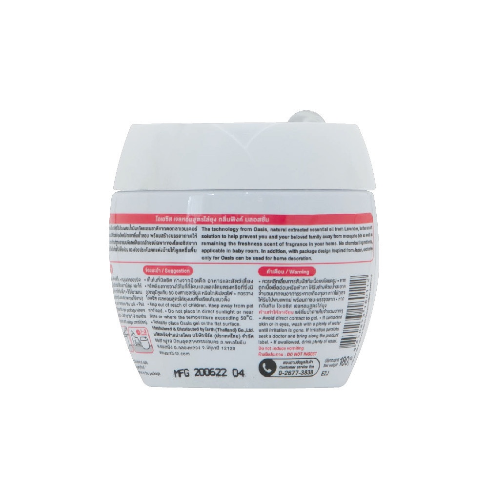 | รุ่น | OASIS โอเอซิส เจลไล่ยุง กลิ่นพิ้งค์ บลอสซั่ม ขนาด 180 กรัม สีชมพู |