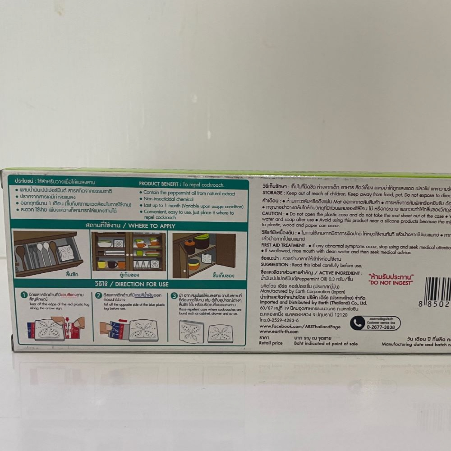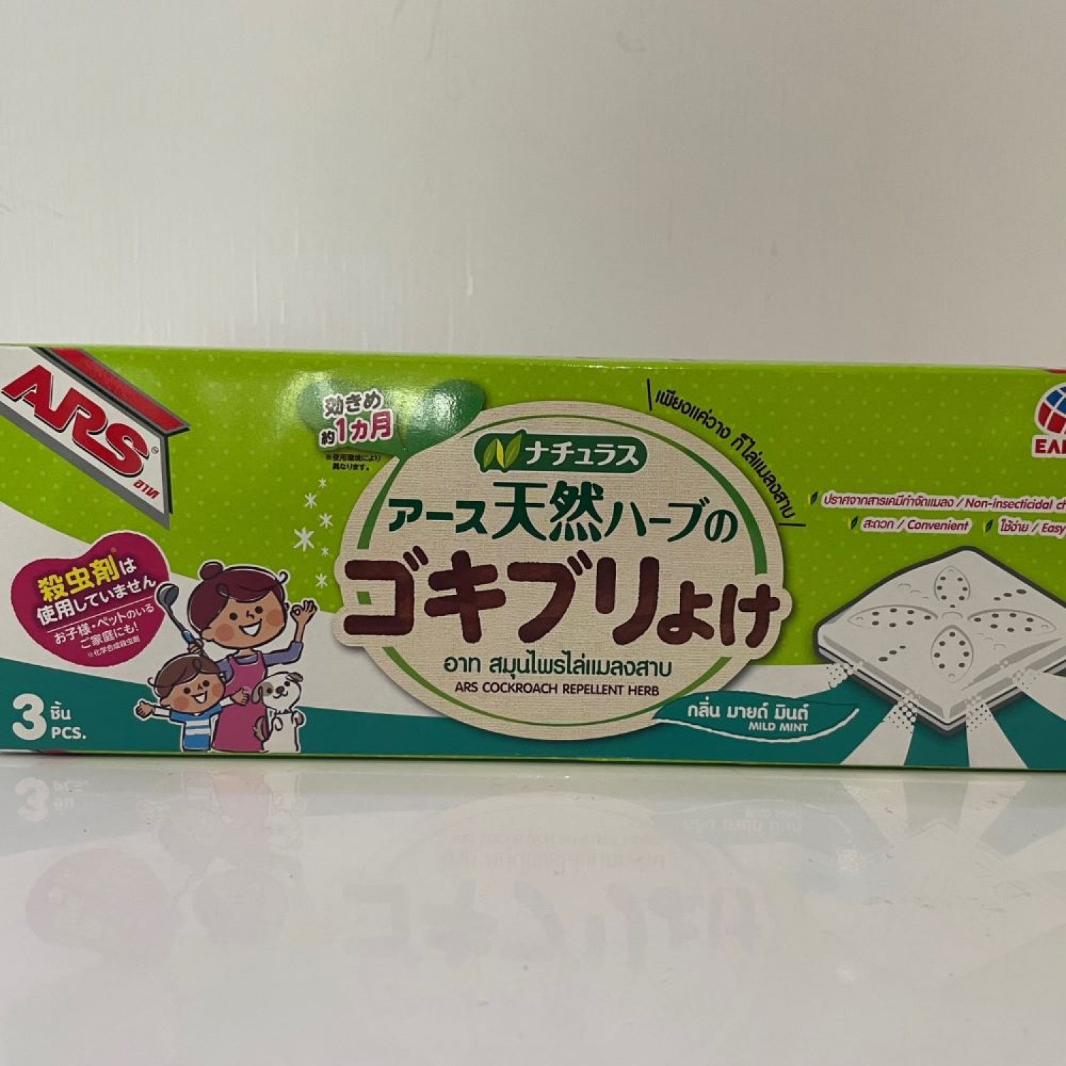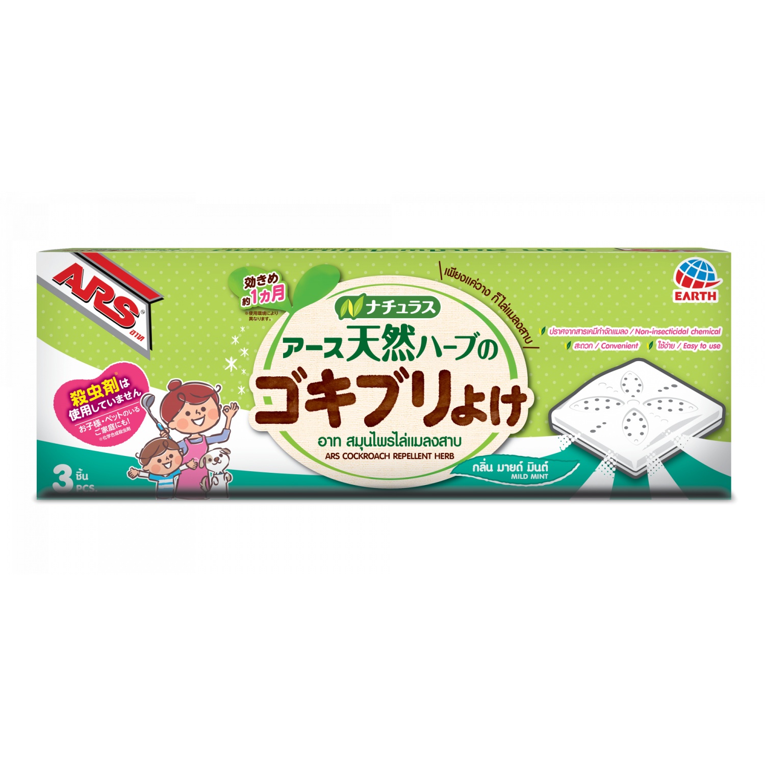 | รุ่น | ARS สมุนไพรไล่แมลงสาบ ขนาด 0.9 กรัม (กล่อง 3 ชิ้น) สีเขียว |