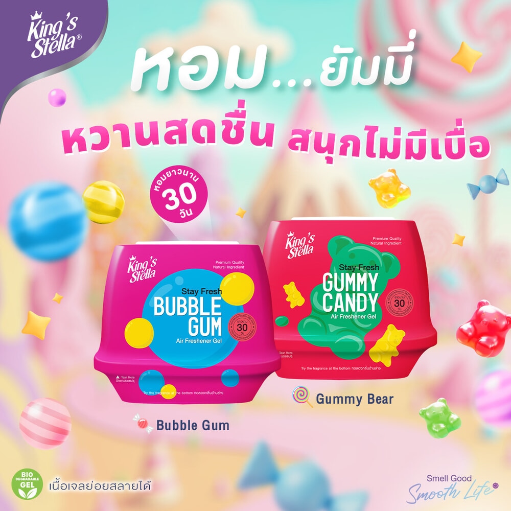 เจลหอมปรับอากาศรูแบบใหม่ สูตรพิเศษเนื้อเจลบริสุทธิ์จากธรรมชาติ ให้ความหอมยาวนานระดับพรีเมี่ยมสไตล์คิงส์สเตลล่า