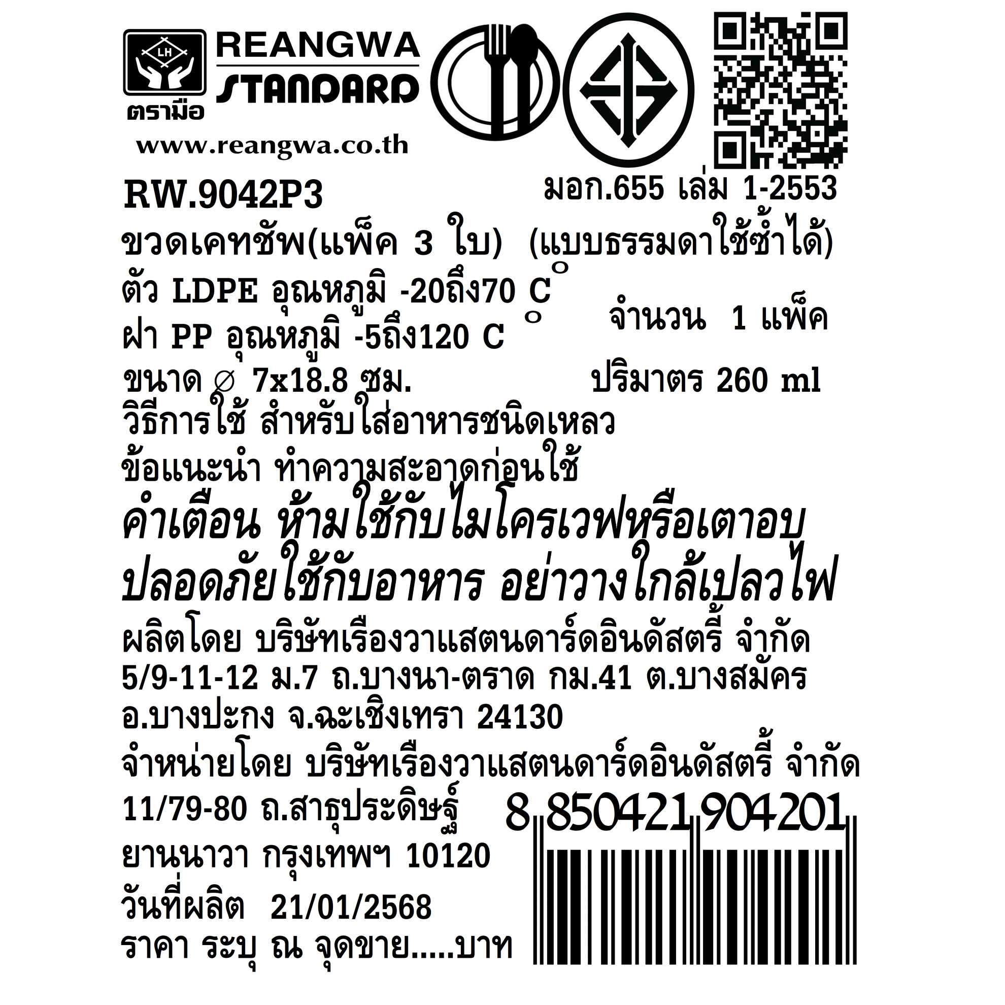 รุ่น | ขวดเคทซัพ 9 ออนซ์ แพ็ค (1x3) RW9042 คละสี แดง-ส้ม |