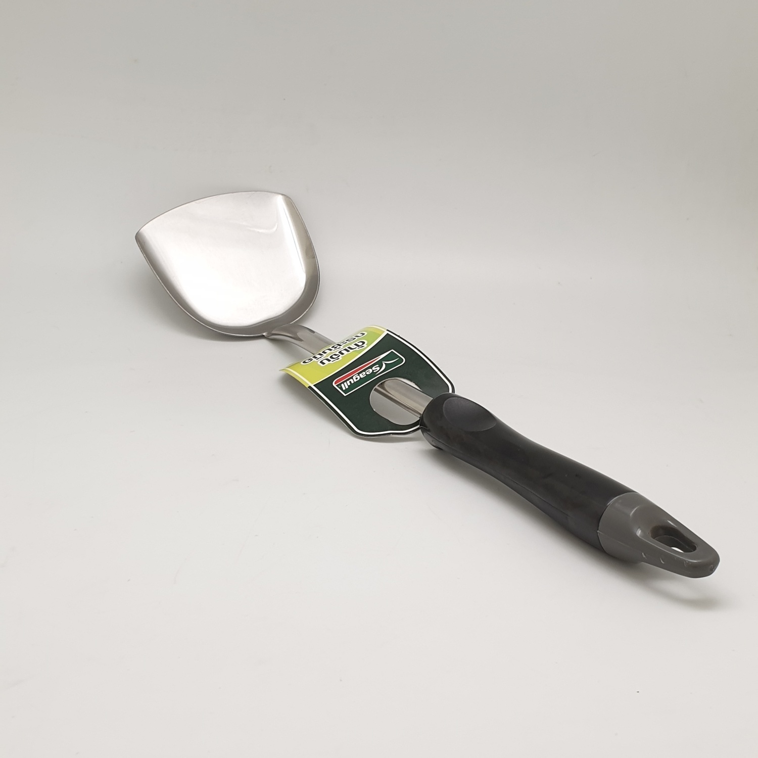 ตะหลิวกลาง-ด้ามดำ ผลิตจากสเตนเลสคุณภาพดี แข็งแรง ทนทาน อายุการใช้งานยาวนาน ด้ามจับเบกาไลท์ แข็งแรง ทนความร้อนได้ 220 องศาเซลเซียส ด้ามจับ จับถนัดมือ