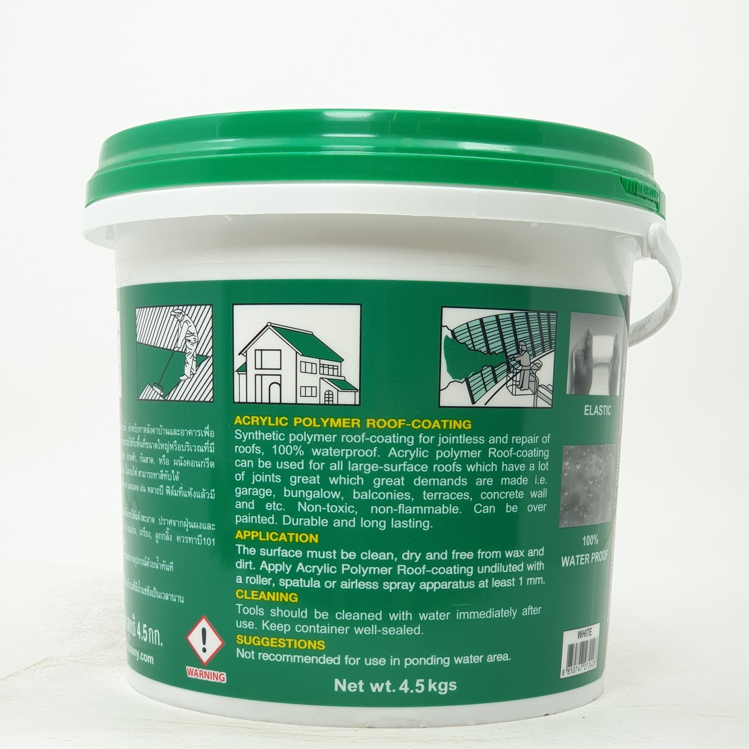 อะครีลิคยืดหยุ่นสูงทนทานต่อสภาวะที่มีการเปลี่ยนแปลงของสภาพภูมิอากาศสูง สามารถกันน้ำซึมได้ 100%
