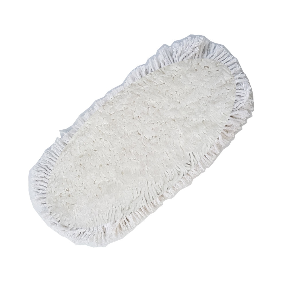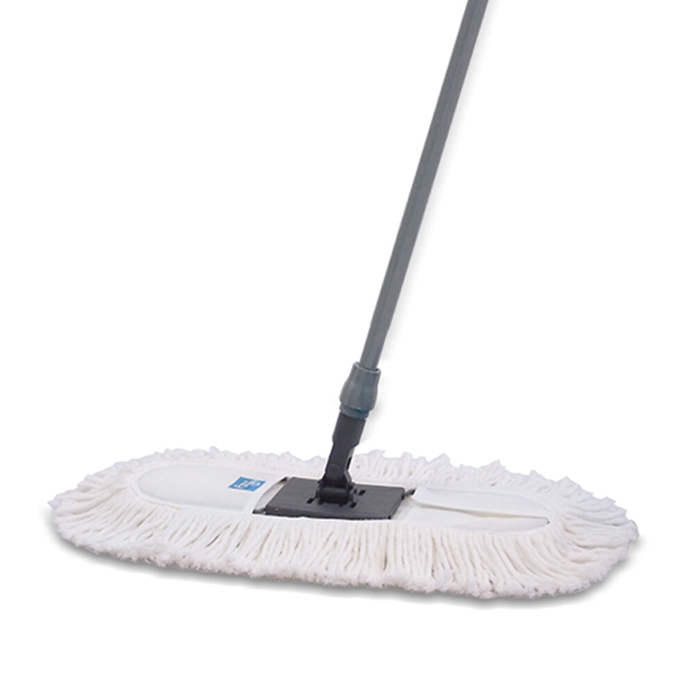 Poly-Brite ม็อบดันฝุ่นผ้าคอตตอน ขนาด 18 นิ้ว รุ่น 5654-2 สีขาว เป็นอุปกรณ์ทำความสะอาดที่ออกแบบมาเพื่อเก็บกวาดฝุ่นละอองขนาดเล็กและเส้นผมได้อย่างมีประสิทธิภาพ โดยไม่ทำให้ฝุ่นฟุ้งกระจาย เนื่องจากเป็นผ้าคอตตอน จึงสามารถดูดซับน้ำได้ดีและเช็ดถูทำความสะอาดได้ทุกพื้นผิว เช่น พื้นไม้ปาร์เก้ หินอ่อน และกระจก โดยไม่ทิ้งเส้นใยผ้าหรือคราบมันบนพื้นผิว