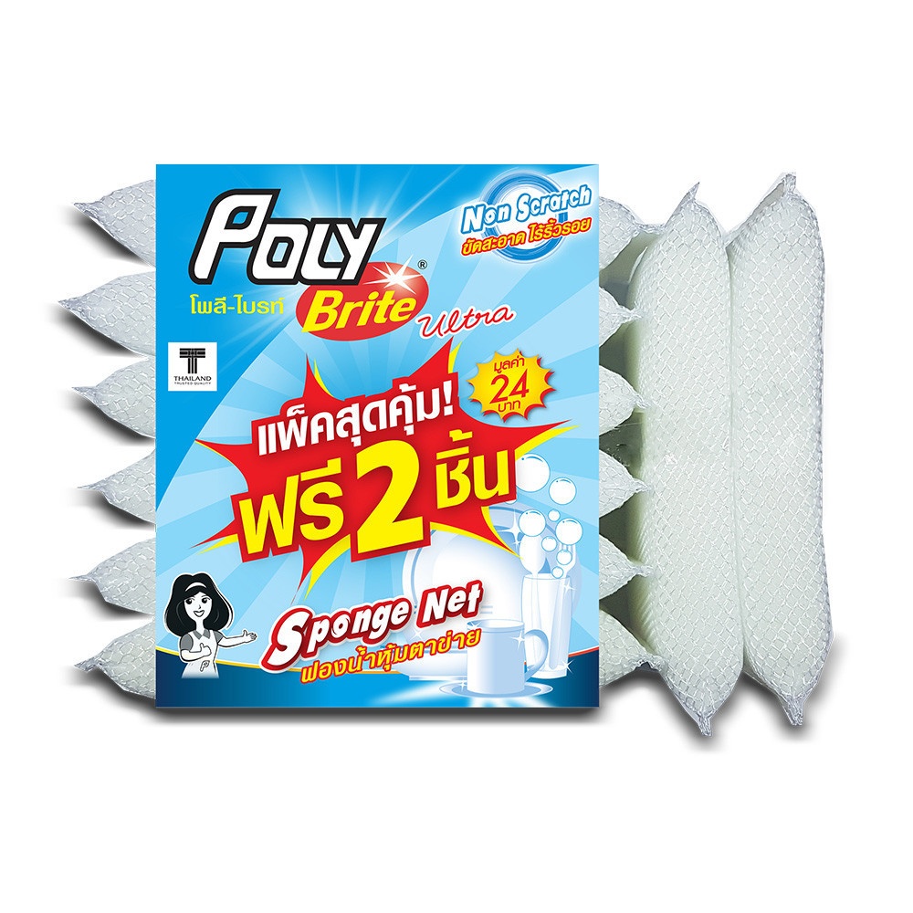 ฟองน้ำหุ้มตาข่ายของ Poly-Brite จึงเป็นที่นิยมเนื่องจากมีความทนทาน ใช้งานได้หลากหลาย และทำความสะอาดพื้นผิวได้อย่างมีประสิทธิภาพ