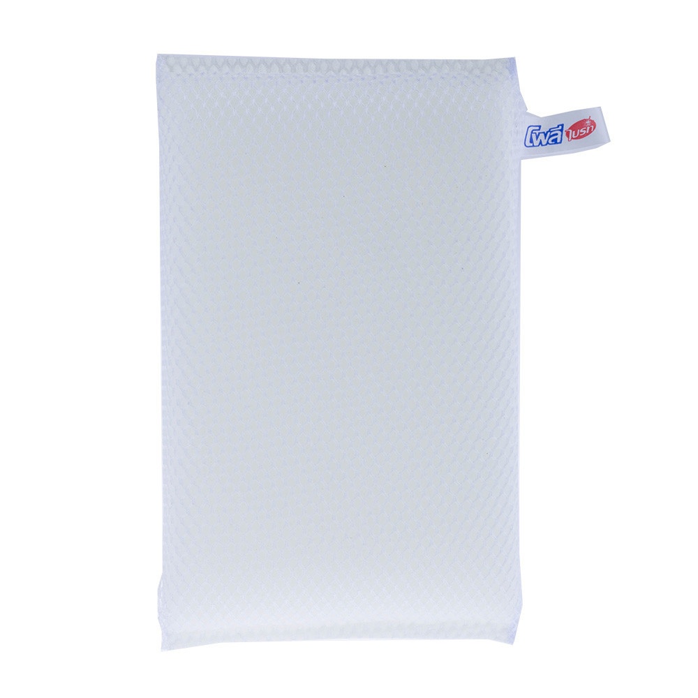 ตาข่ายไนลอน (Nylon Mesh): ตาข่ายที่หุ้มฟองน้ำมีคุณสมบัติในการเพิ่มประสิทธิภาพการขัดถู โดยสามารถขจัดคราบฝังแน่นได้ดี เช่น คราบอาหาร หรือคราบสกปรกที่ติดแน่น ช่วยทำให้ฟองน้ำมีอายุการใช้งานนานขึ้น และช่วยในการทำความสะอาดได้รวดเร็ว