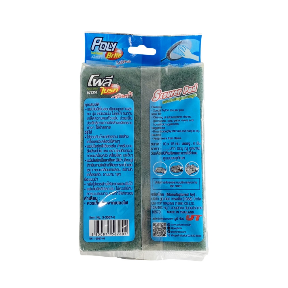 แผ่นใยขัดในล่อนพิเศษคุณภาพสูง คม นุ่ม เหนียวแน่น ไม่ยุ่ยน้ำ ทนทาน เกล็ดความคมทั่วแผ่น ช่วยเพิ่มประสิทธิภาพการขัดล้างขจัดคราบต่างๆ