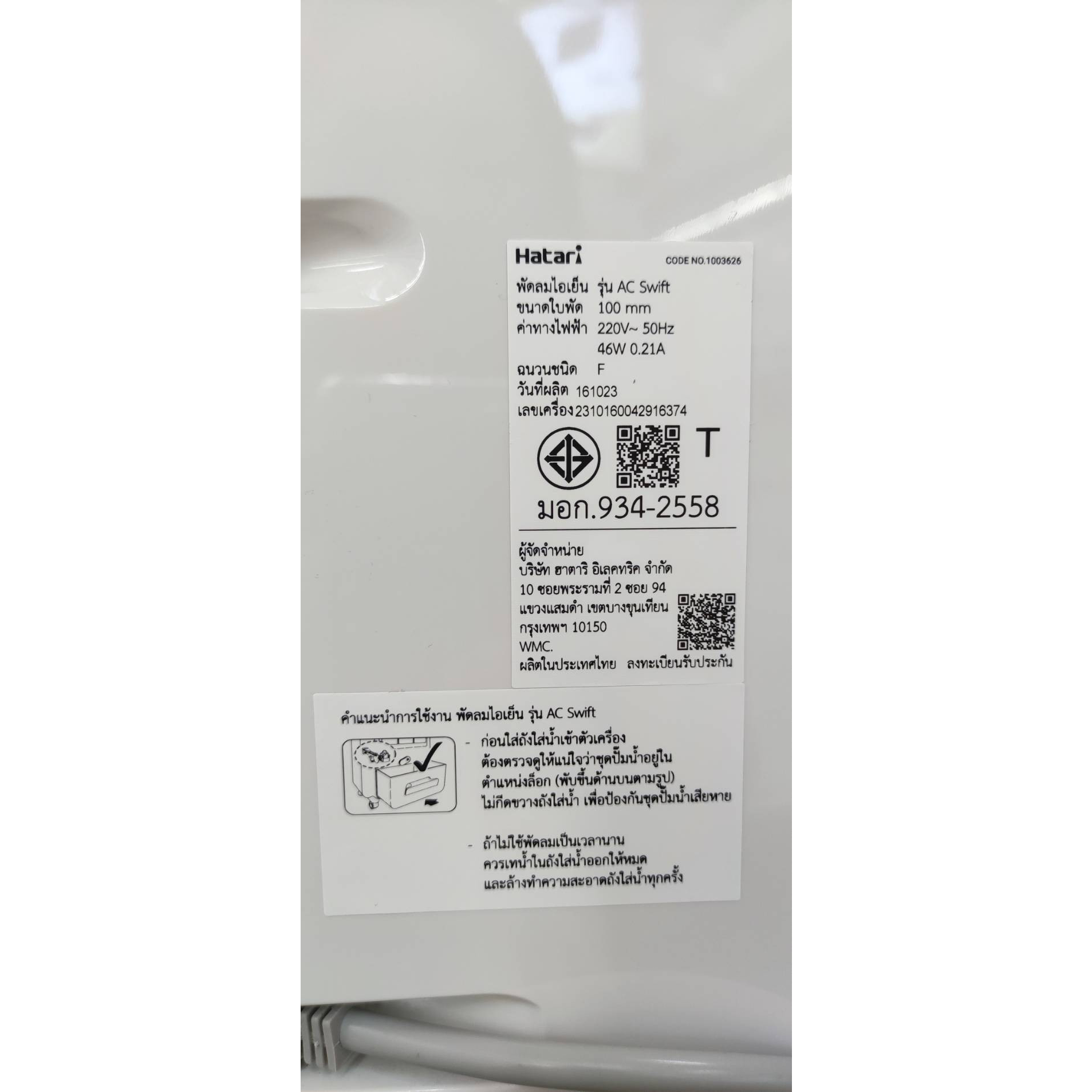 รับประกันมอเตอร์ และแผ่นวงจรอิเล็กทรอนิกส์ 3 ปี