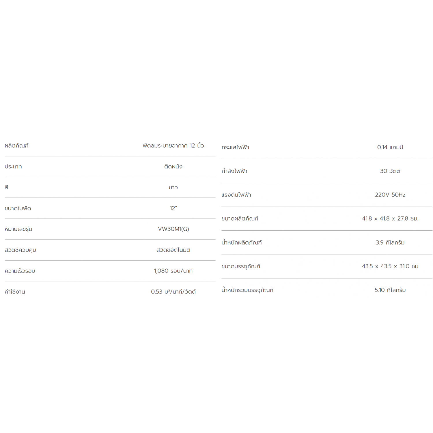 | รุ่น | VW30M1(G) |