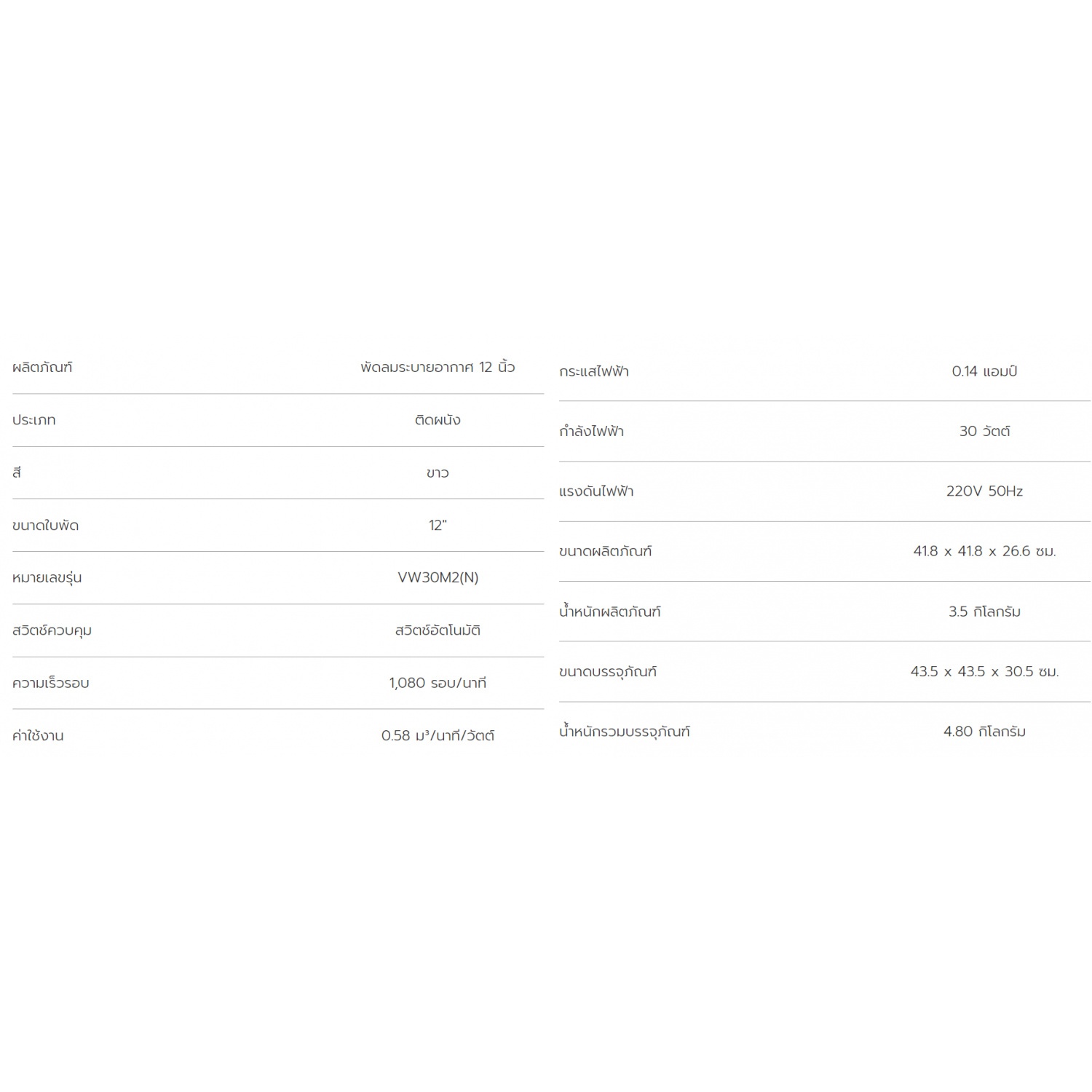 | รุ่น | VW30M2(N) |