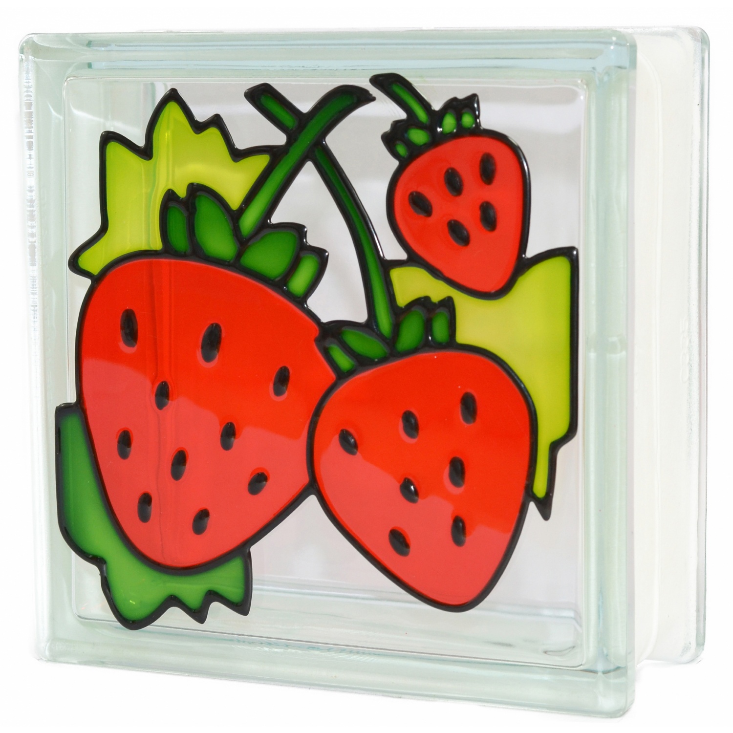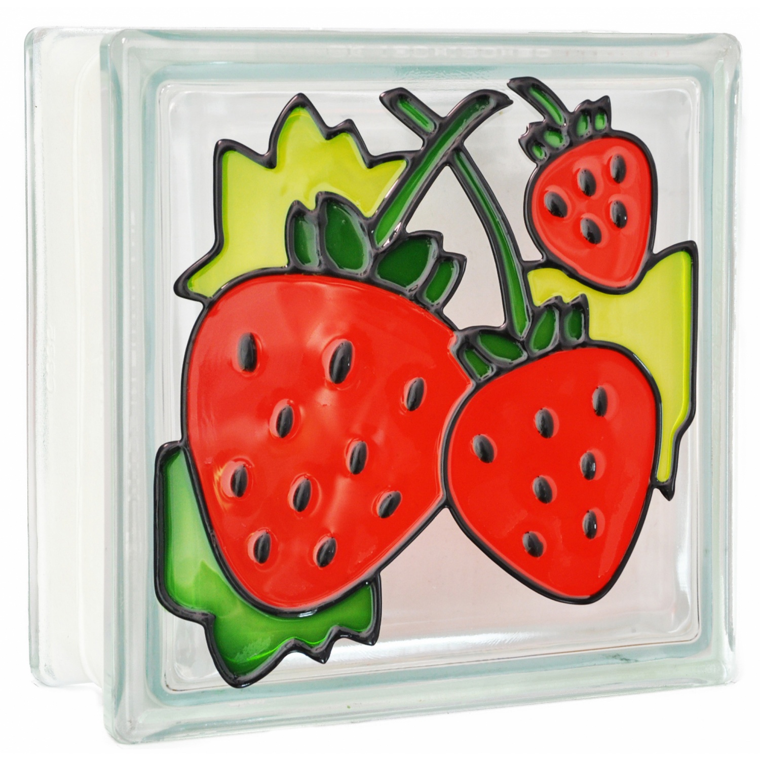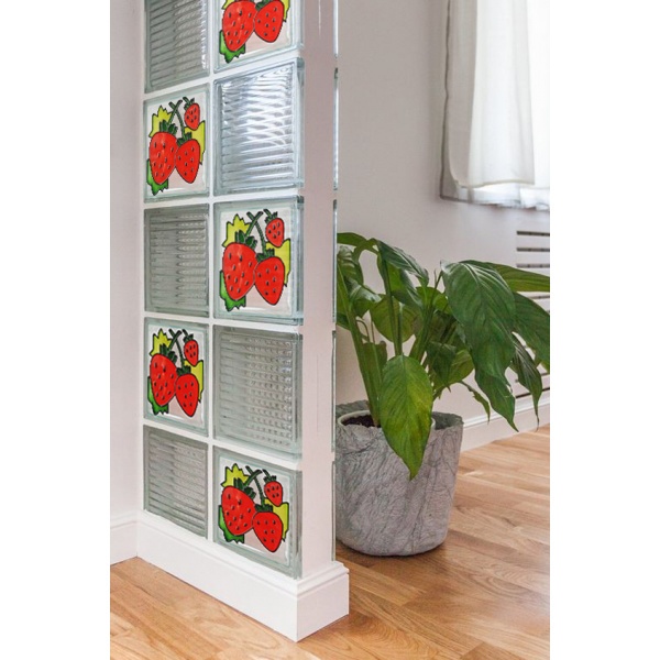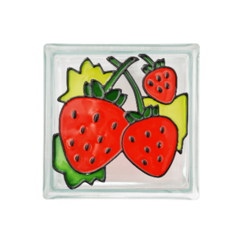 บล็อกแก้ว Stain glass ลายเดี่ยว ลายสตรอเบอรี่ เป็นลวดลาย สีสันที่สวยงามมาก และทนทาน เป็นนวัตถกรรมบล็อกแก้ว เพื่อตอบโจทย์ของคุณแบบไม่ซ้ำใคร นอกจากจะสร้างความสวยงาม มีมิติ ยังช่วงเพิ่มแสงสว่างภายในบ้านหรืออาคาร ช่วยให้แสงสว่างส่องผ่านได้ถึง 50-70% และที่สำคัญยังช่วยประหยัดพลังงานไฟฟ้า