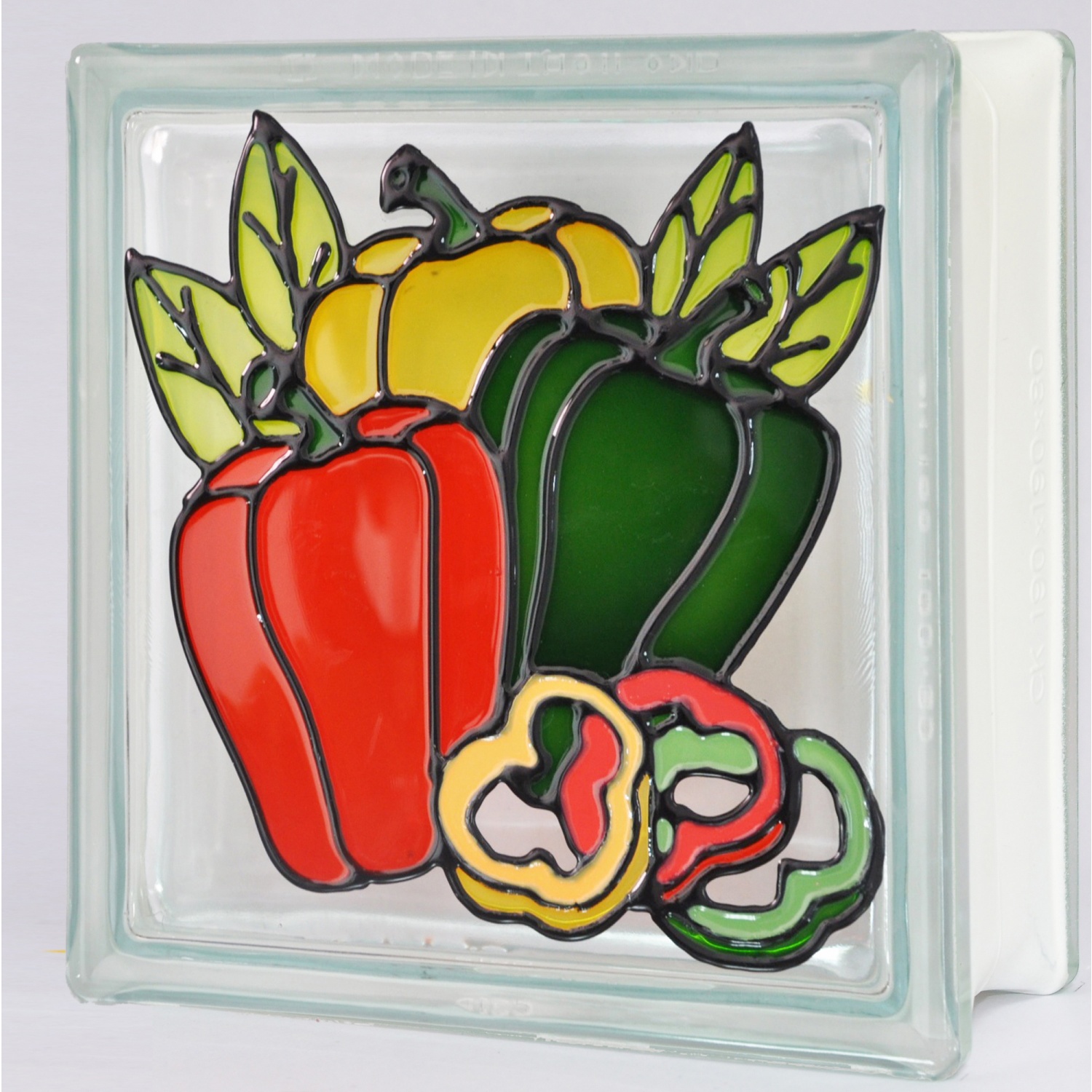 Stain glass ลายพริกหวาน เป็นลวดลาย สีสันที่สวยงามมาก และทนทาน เป็นนวัตถกรรมบล็อกแก้ว เพื่อตอบโจทย์ของคุณแบบไม่ซ้ำใคร นอกจากจะสร้างความสวยงาม มีมิติ ยังช่วงเพิ่มแสงสว่างภายในบ้านหรืออาคาร ช่วยให้แสงสว่างส่องผ่านได้ถึง 50-70% และที่สำคัญยังช่วยประหยัดพลังงานไฟฟ้า