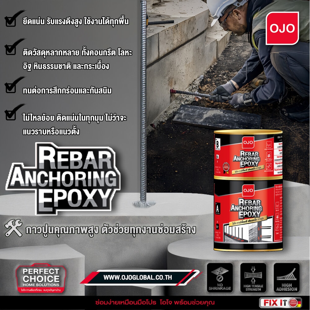 โอโจ กาวอีพ็อกซี่ เสียบเหล็ก กาวปูน ยึดเกาะดี รับแรงดึงสูง ไม่หดตัว