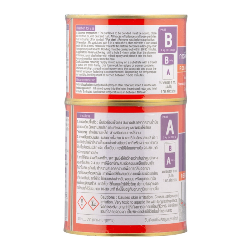 งานแนวตั้ง: หยอดอีพ็อกซี่เข้าไปในรูเสียบ แล้วจึงเสียบเหล็ก พร้อมทั้งยึดให้นิ่งประมาณ 5 นาที อุณหภูมิขณะใช้งาน 10-40 องศาเซลเซียส
