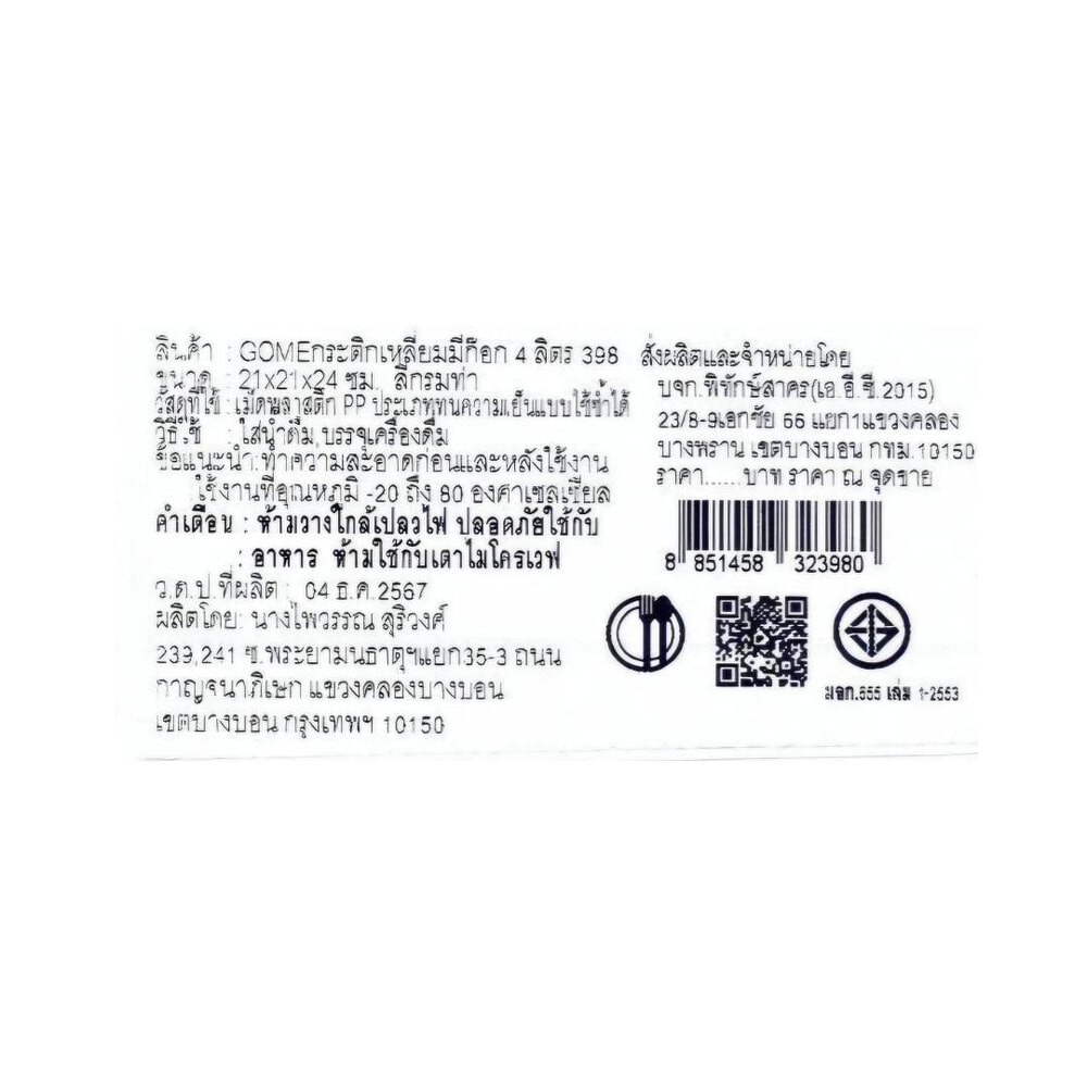 | รุ่น | AG398BD กระติกเหลี่ยมมีก๊อก 4 ลิตร สีกรมท่า |