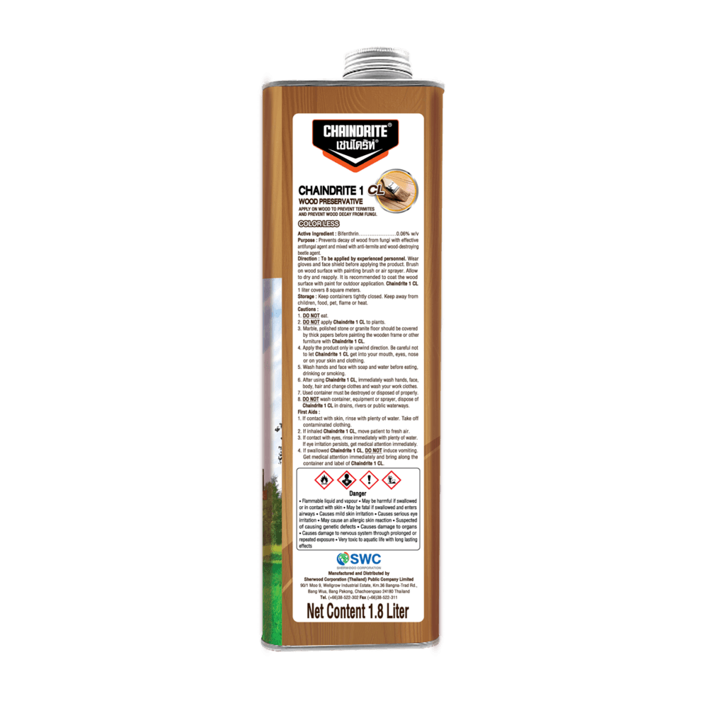 ผลิตภัณฑ์รักษาเนื้อไม้ ใช้ทาไม้เพื่อป้องกันปลวก มอด และเชื้อรา เหมาะสำหรับใช้ทาบริเวณที่มีเฟอร์นิเจอร์ Build-in และส่วนที่วัสดุไม้เชื่อมต่อกับผัง มีส่วนผสมของไบเฟนทริน เป็นสารจำกัดแมลงในกลุ่มไพรีทรอยด์ สารสกัดที่ได้มาจากดอกของพืชตระกูลดอกเบญจมาส