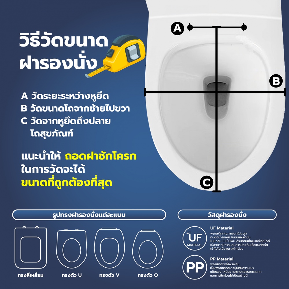 ฝารองนั่งชักโครก ใช้งานได้อย่างสะดวกสบายตัวขณะเข้าห้องน้ำด้วยหน้าฝาที่เป็นรูปทรงแบบยาว Elongated รองรับสรีระและน้ำหนักได้อย่างดี นั่งสบาย ไม่แตกหักง่ายด้วยวัสดุผลิตจากพลาสติก PP มีความเหนียว แข็งแรงทนทาน รับแรงกระแทกได้ดี ทนต่อความเปียกชื้นและการผุกร่อน และด้วยเนื้อพลาสติกผสานสารป้องกันเชื้อแบคทีเรีย จึงช่วยลดการสะสมคราบสิ่งสกปรก ให้คุณทำความสะอาดง่ายขึ้น ใช้งานปลอดภัย ติดตั้งง่าย ใช้ได้กับสุขภัณฑ์