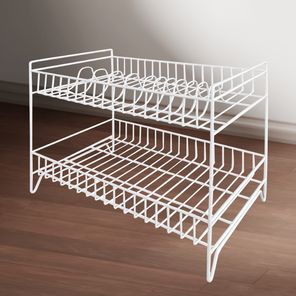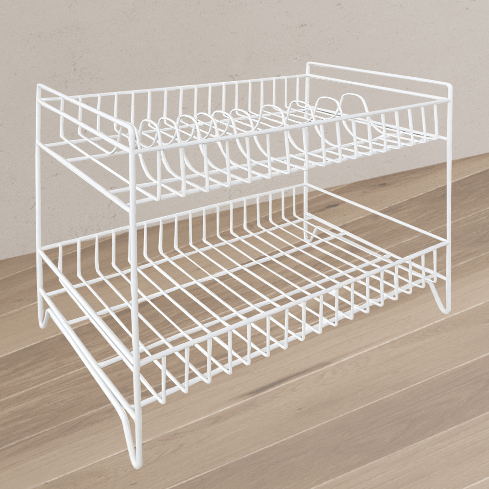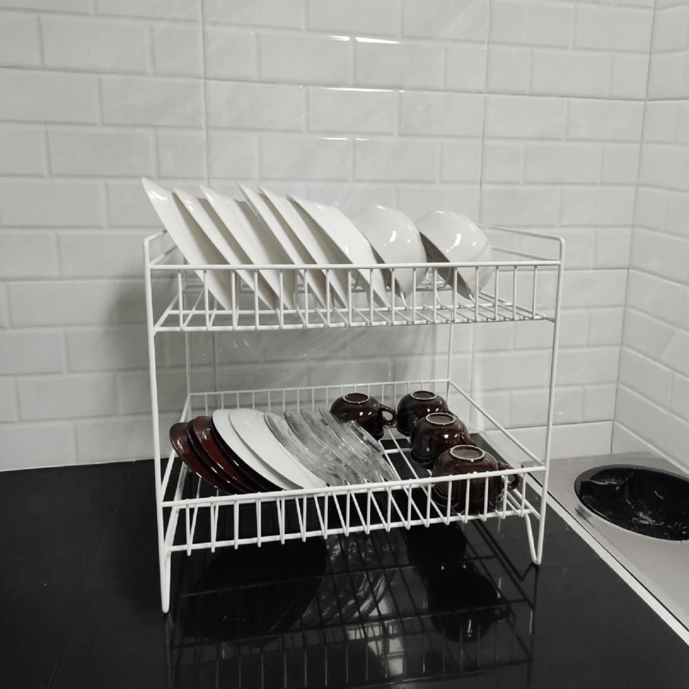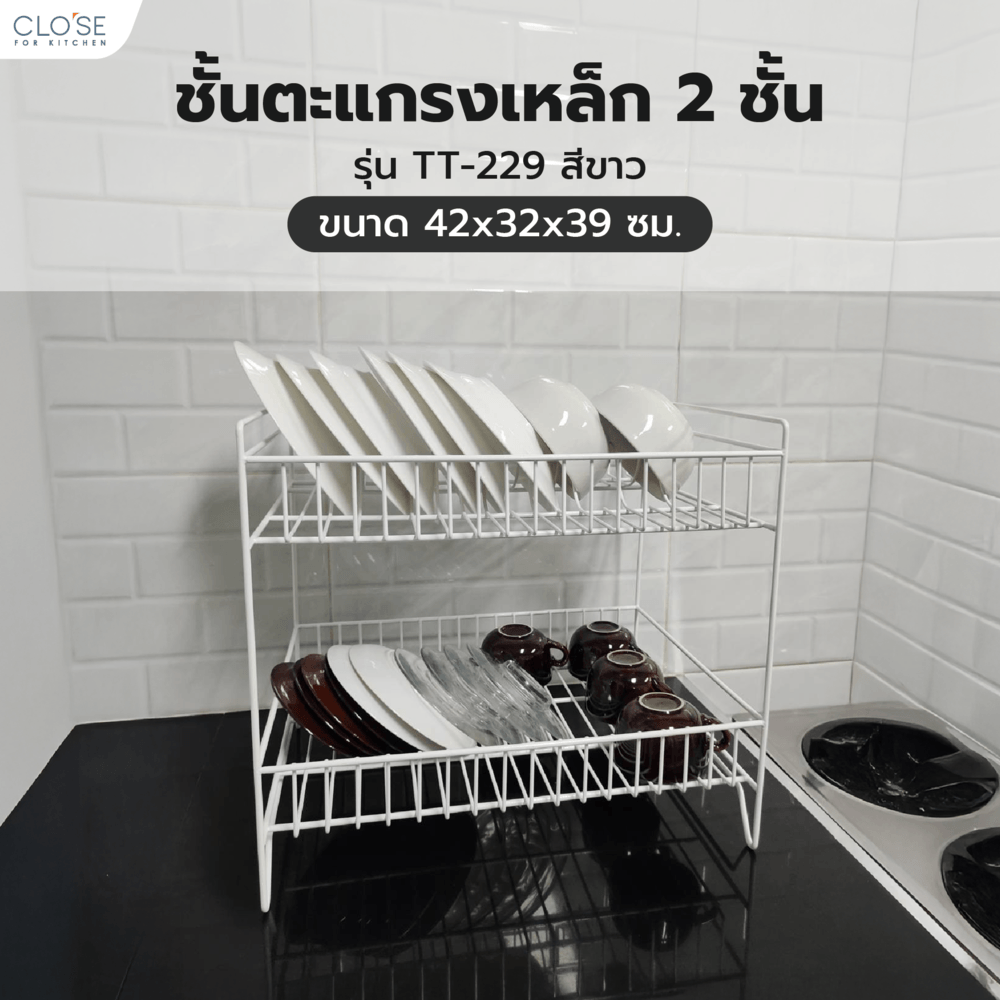 ชั้นตะแกรงคว่ำจานจาก CLOSE ผลิตจากเหล็กคุณภาพดี มีความแข็งแรง ทนทาน พ่นสีขาวเพื่อป้องกันสนิม ออกแบบมาเพื่อการใช้งานได้อย่างอเนกประสงค์ด้วยชั้นวาง 2 ชั้น สามารถคว่ำจานชามหรือจัดวางสิ่งของได้ตามที่ต้องการ ตัวโครงเป็นท่อเหล็กใหญ่ รับน้ำหนักได้ถึง 10 กิโลกรัม มั่นใจได้ถึงความมั่นคง ใช้งานได้ยาวนาน พร้อมให้คุณวางภาชนะได้อย่างสบายใจ ไร้ข้อกังวล