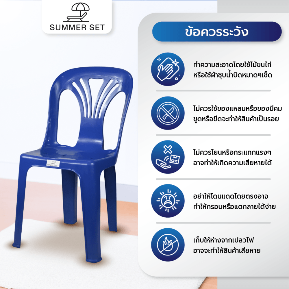 TREE'O เก้าอี้พลาสติกพนักพิง รุ่น หยก FT-220/B สีน้ำเงิน