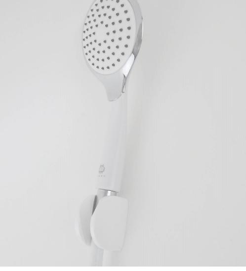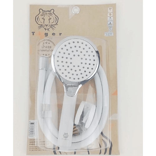 ชุดฝักบัวอาบน้ำขอบโครเมี่ยม หน้าขาว พร้อมสายใยแก้ว PVC 1.2 ม. น้ำแรงแม้แรงดันน้ำน้อย