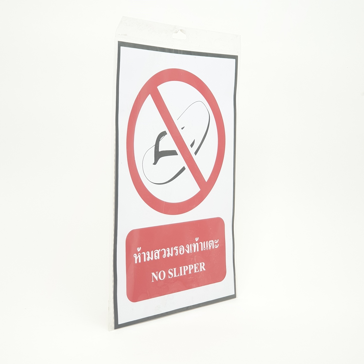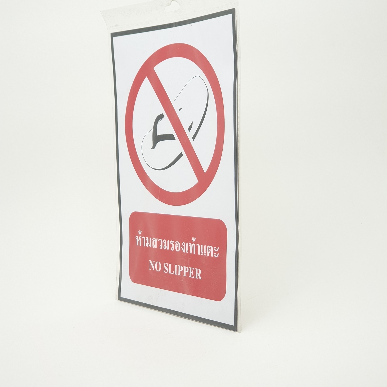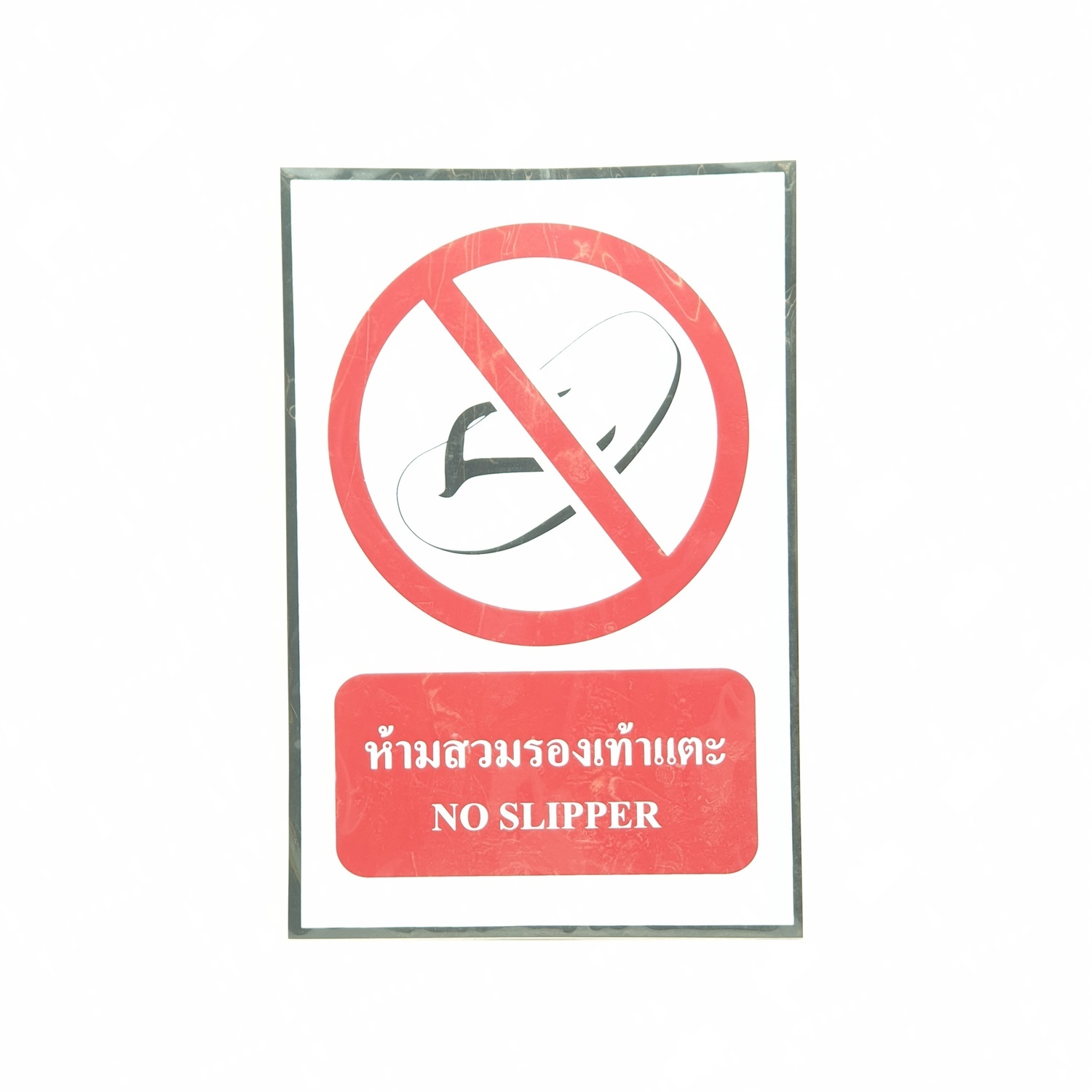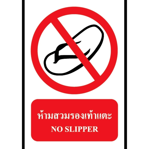 ป้ายสติ๊กเกอร์ห้ามสวมรองเท้าแตะ ขนาด20x30 ซม.