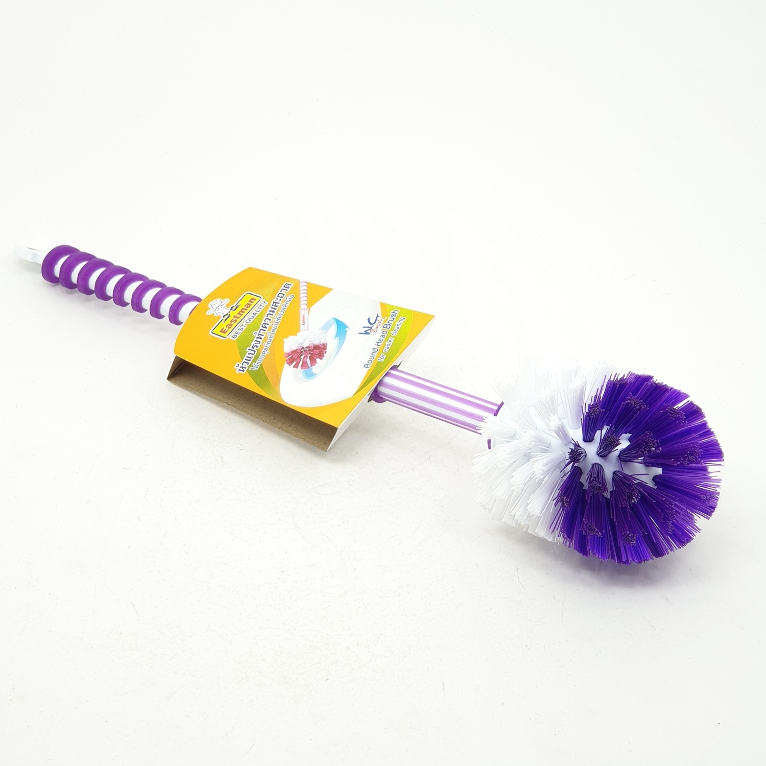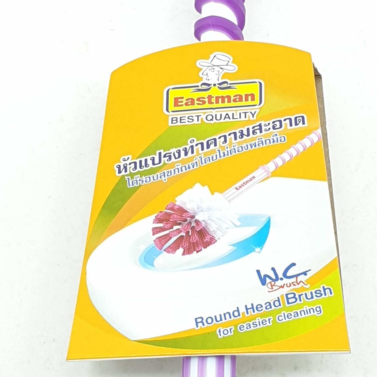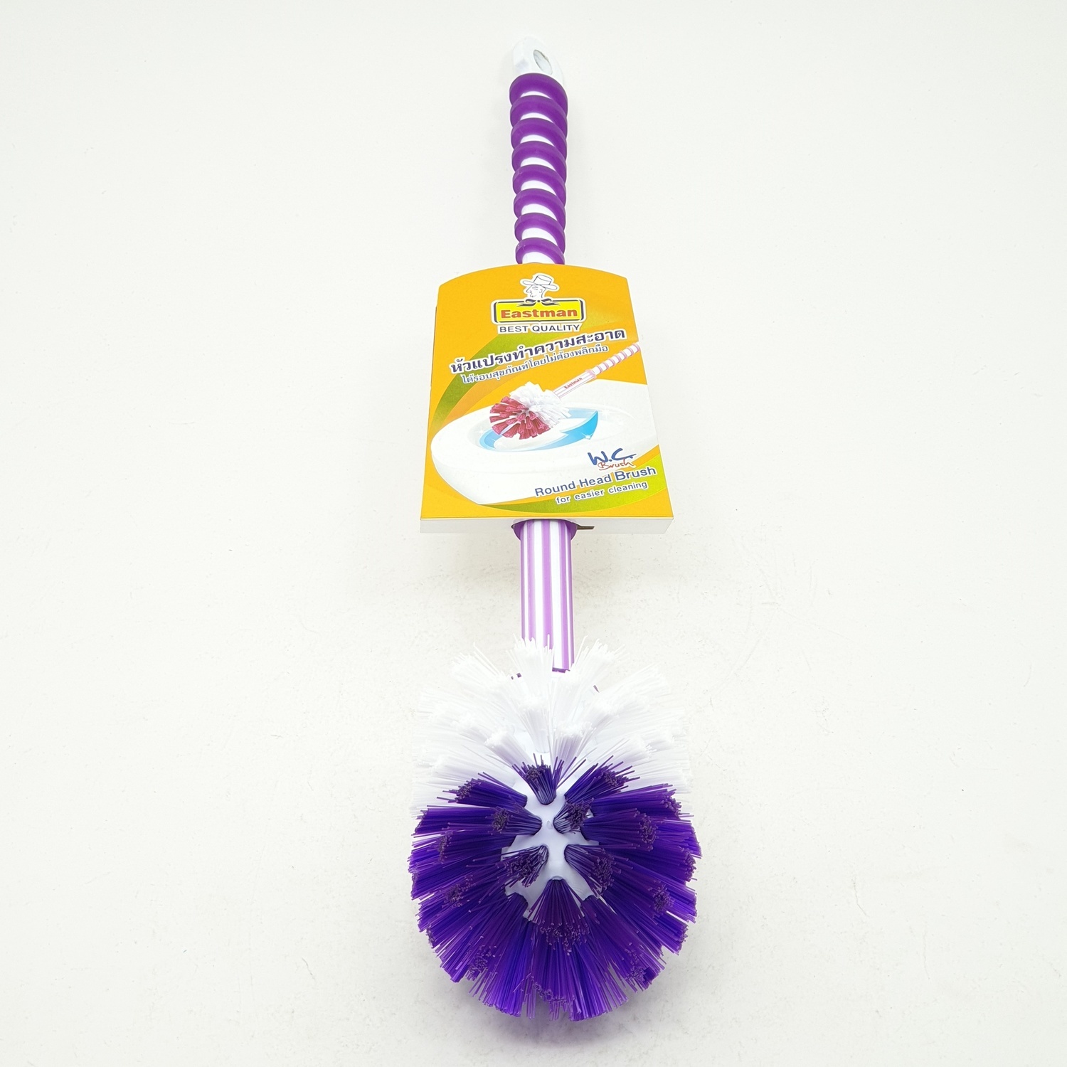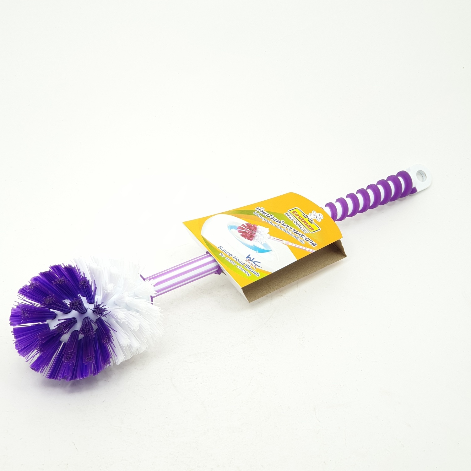 แปรงล้างสุขภัณฑ์เดี่ยว ตราอีสท์แมน แปรงหัวกลมใช้ สำหรับล้างโถสุขภัณฑ์ โดยไม่ทำลายพื้นผิวสุขภัณฑ์ และ ทำความสะอาดได้รอบทิศทางในครั้งเดียว โดยไม่ต้องพลิกมือ ขนแปรงผลิตจาก PP เกรด A ช่วยทำความสะอาดคราบสกปรก ออกได้โดยง่าย ไม่เหนื่อยแรง ด้ามมีเกลียวจับถนัดมือ ไม่ลื่นหลุดง่าย ขณะใช้งาน สามารถแขวนผนังได้ ประหยัดพื้นที่