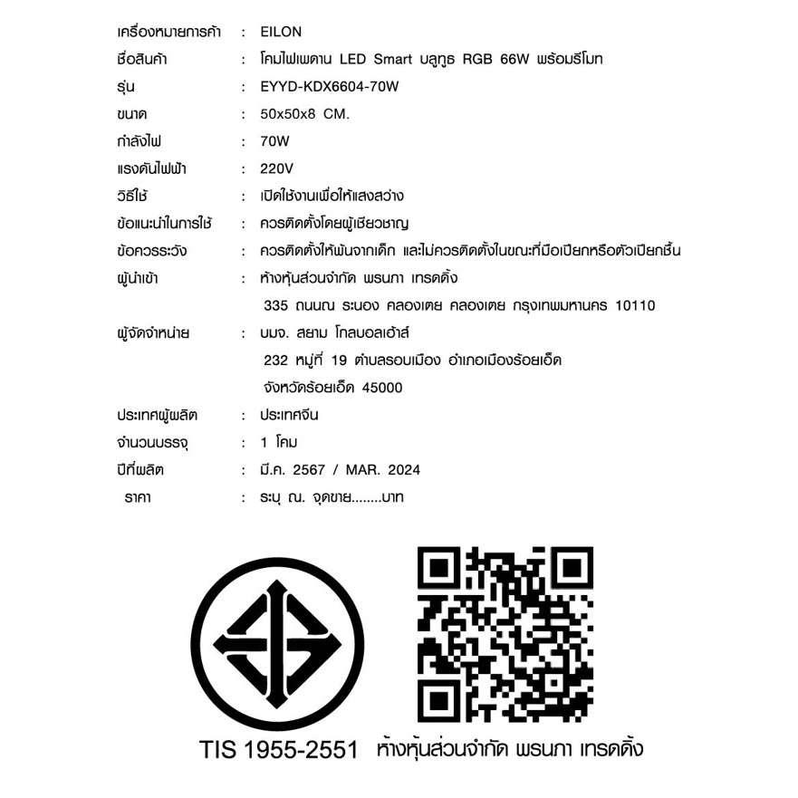 | รุ่น | EYYD-KDX6604-70W |