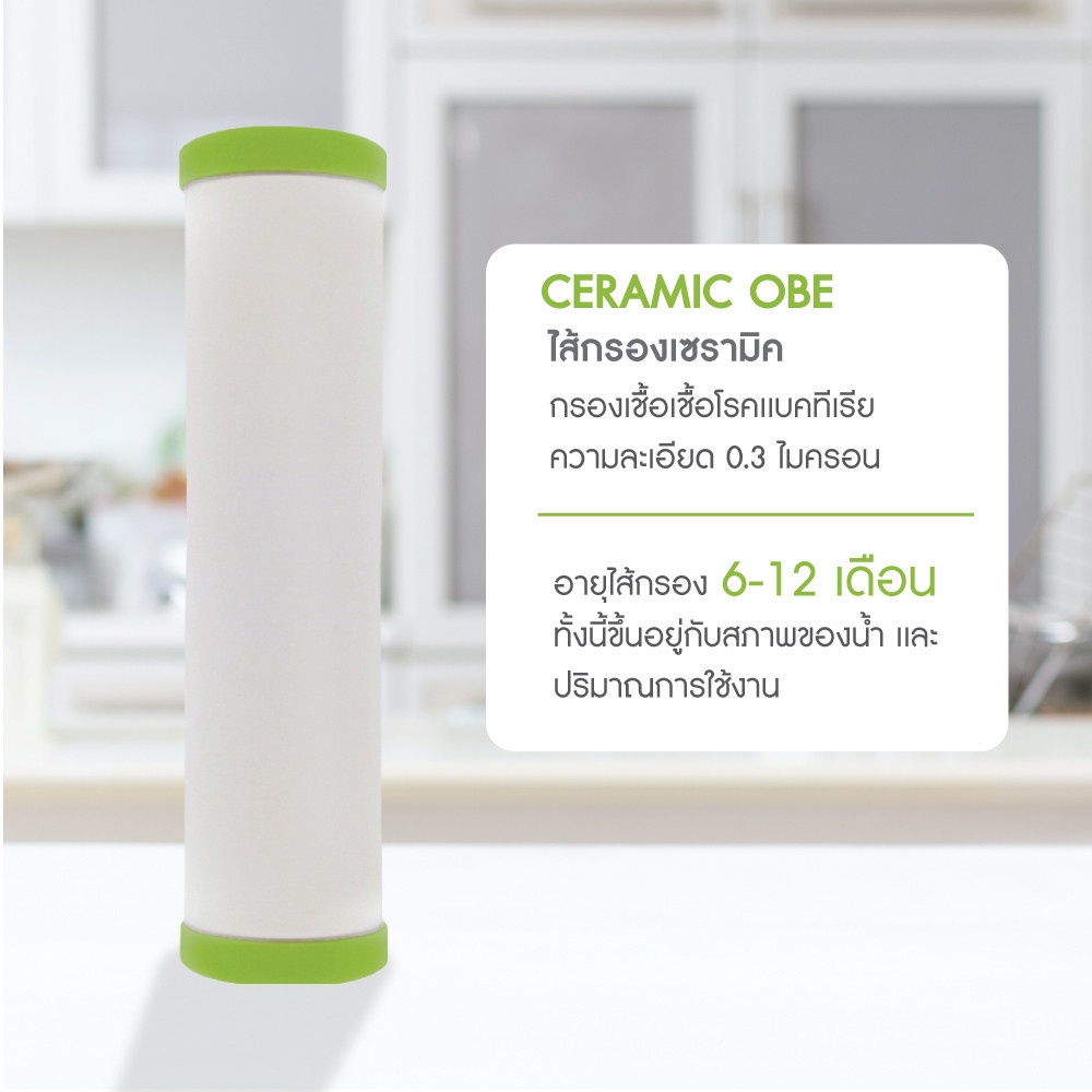 ไส้กรองเซรามิค OBE กรองเชื้อโรคในน้ำได้เป็นอย่างดี เช่น เชื้อแบคทีเรียและจุลินทรีย์บางชนิด
