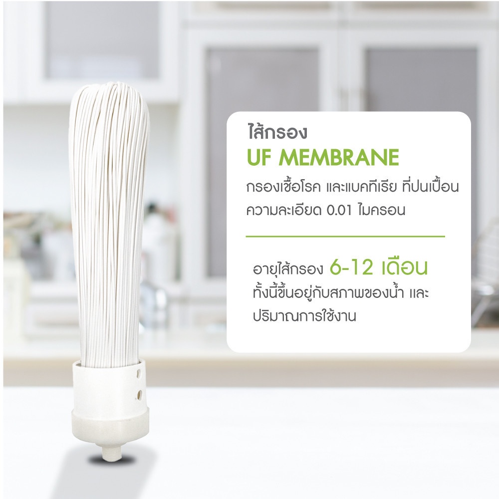 ไส้กรองเมมเบรน สำหรับเครื่องกรองน้ำระบบ UF ของเครื่องกรองน้ำดื่ม มีคุณสมบัติในการกรองเชื้อโรคและแบคทีเรีย รวมทั้งไวรัส ที่ความละเอียดถึง 0.01 ไมครอน