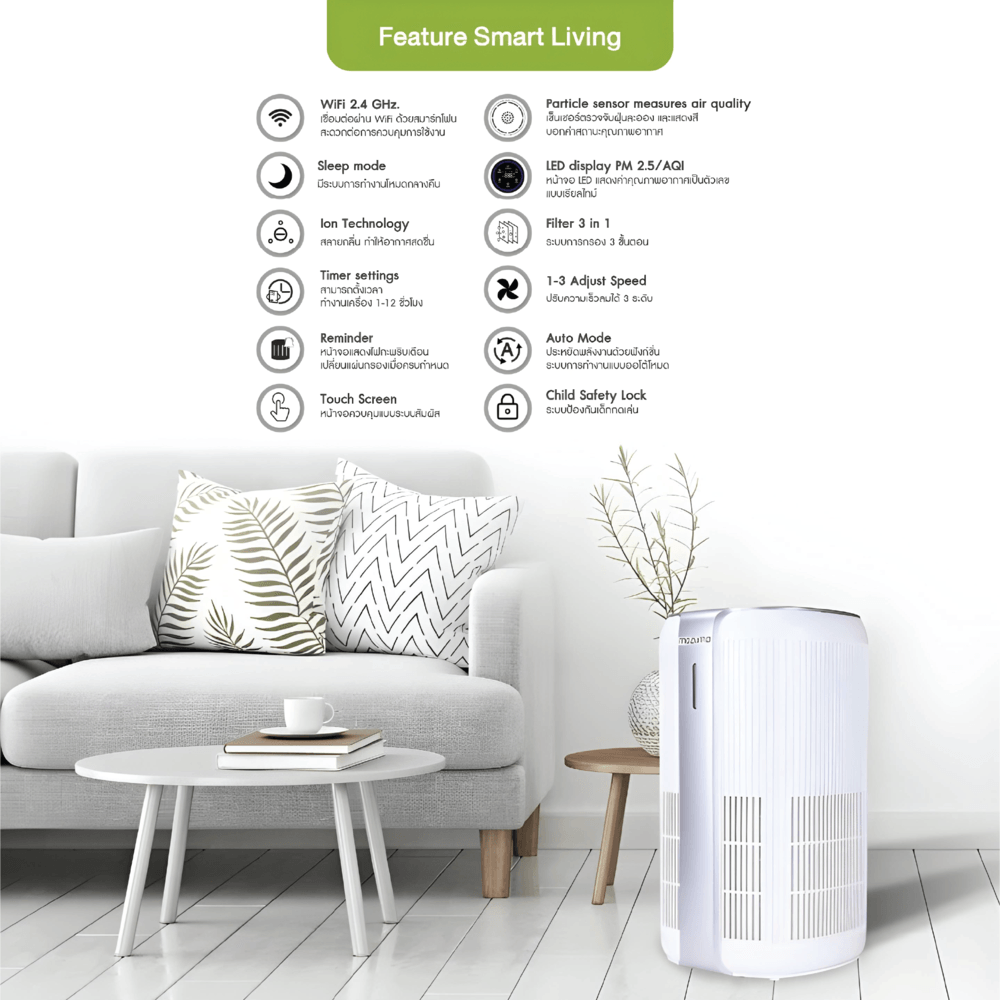 | รุ่น | MAZUMA เครื่องฟอกอากาศ รุ่น AIR CLEAN 300 สีขาว |