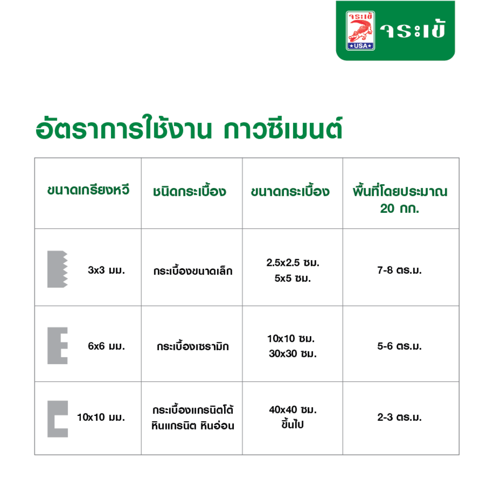 ตวงกาวซีเมนต์ จระเข้เขียว 2.5 ส่วน ต่อ น้ำ 1 ส่วน โดยปริมาตร