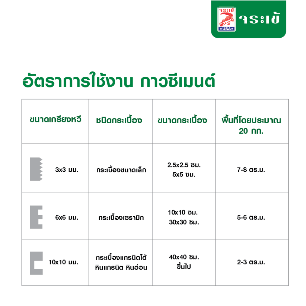 ตวงกาวซีเมนต์ จระเข้ฟ้า 2.6 ส่วน ต่อ น้ำ 1 ส่วน โดยปริมาตร